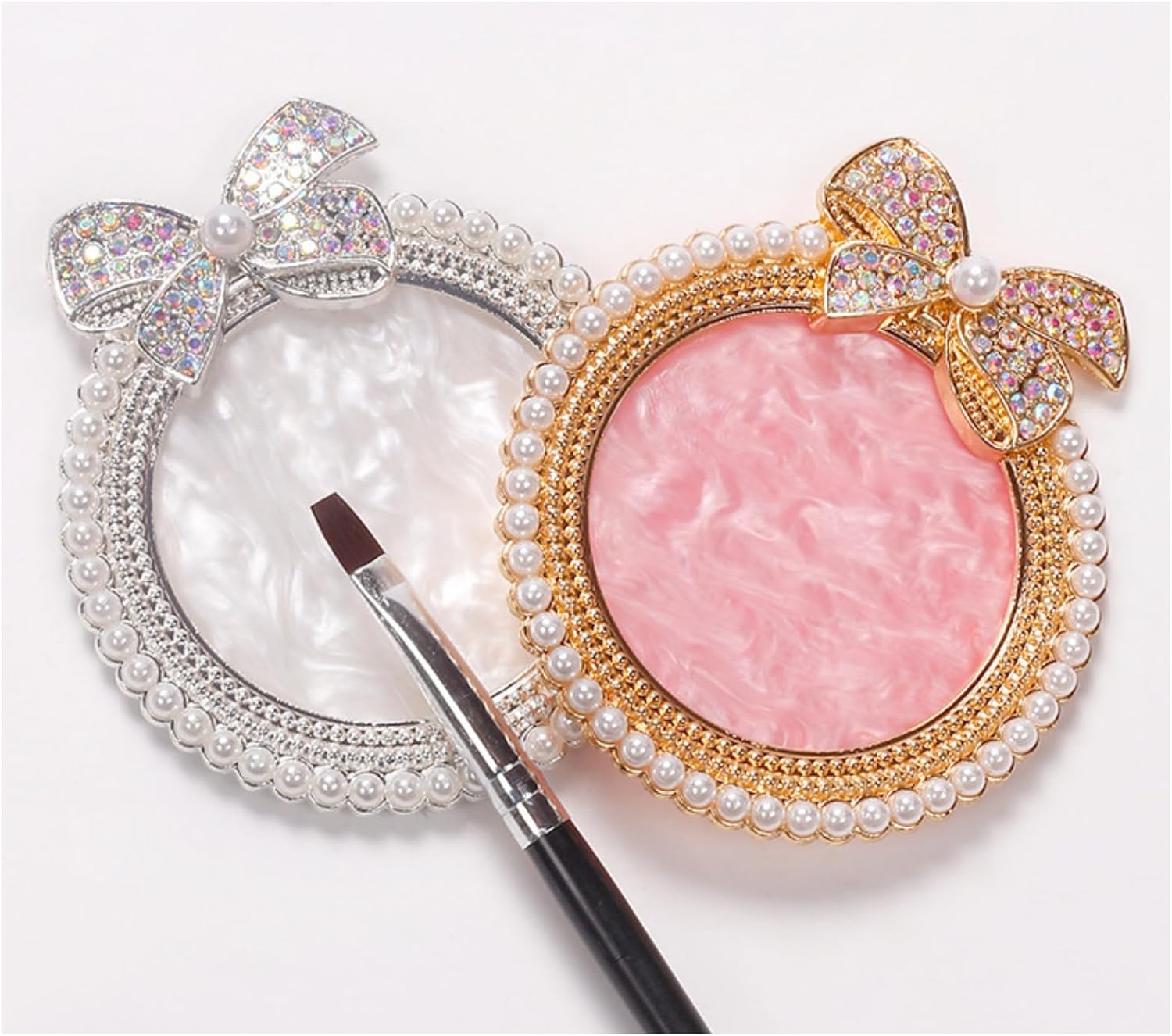 4Pcs Resin Nail Art Plalette Nail Polish Mixing Plate Gel Palette Manicure Tool for Nail Art Display (Pink Silver)