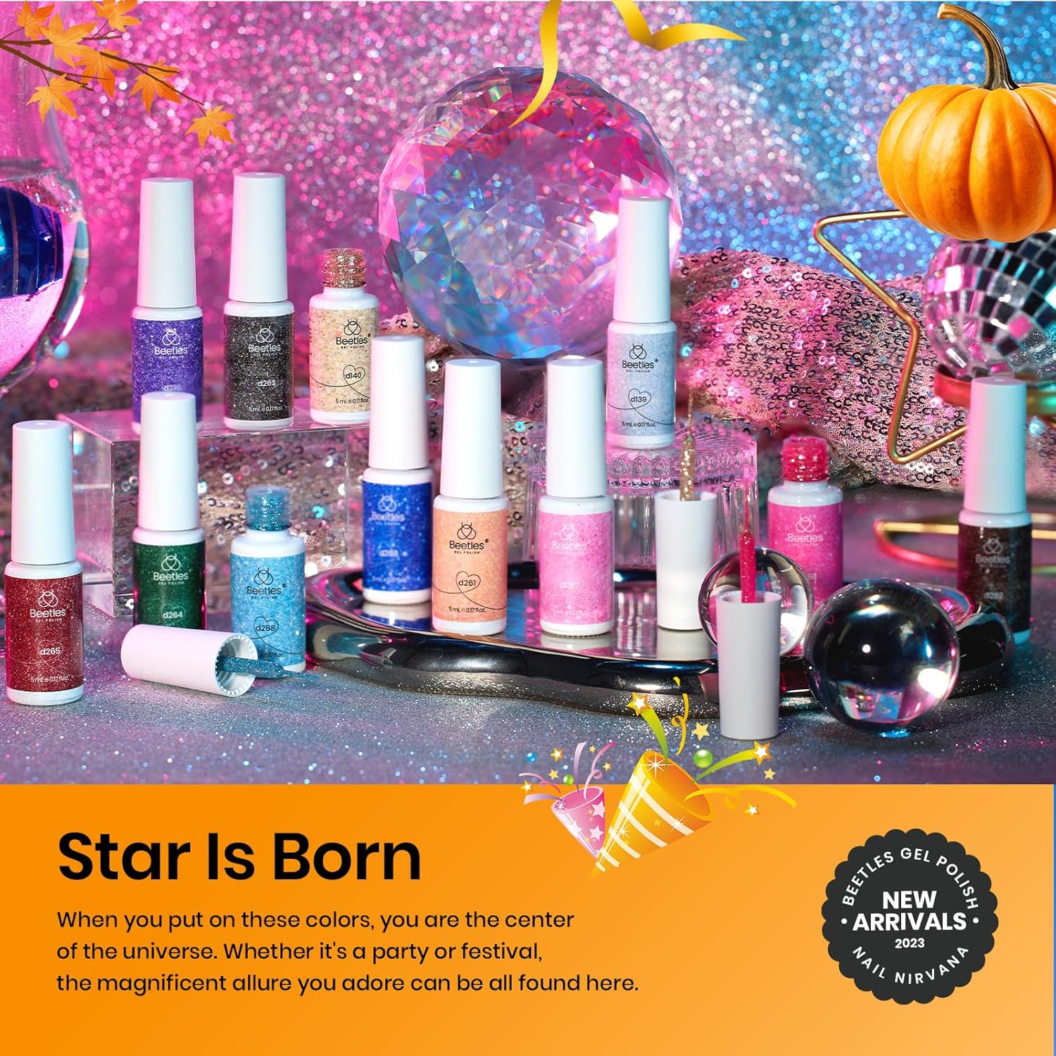 - 【Gel Liner Nail Polish Set】: Countless new stars is shining in the universe, with beetles diamond reflective glitter gel polish you will become the center of all. 12 gorgeous and popular colors and built thin brushes make your nail art design much more easy. You can trace, fill, outline, draw waves, lines, French styles, painting with the nail pen brush.