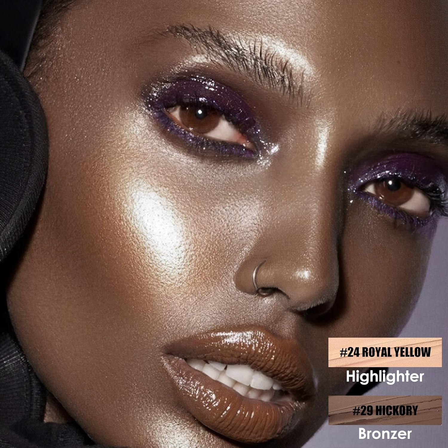 - Create 3D Makeup Effect:This contour stick set has a radiant bronzer and a shimmering highlighter to give skin a warm, natural glow. It melts beautifully into skin, never feeling sticky or greasy, and gives skin a revived and youthful look.