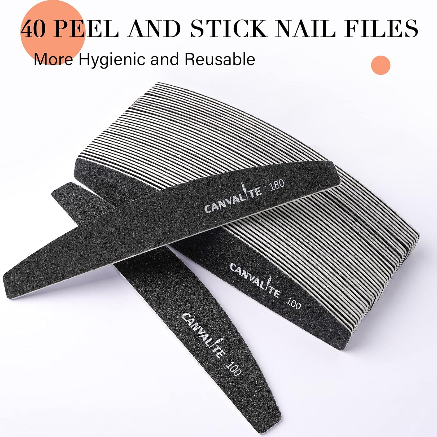 Canvalite 40 PCS Nail File 100/180 Grit Peel and Stick Nail Files Replaceable Emery Boards Reusable Nail File for Acrylic Nails Professional for DIY Salon Use
