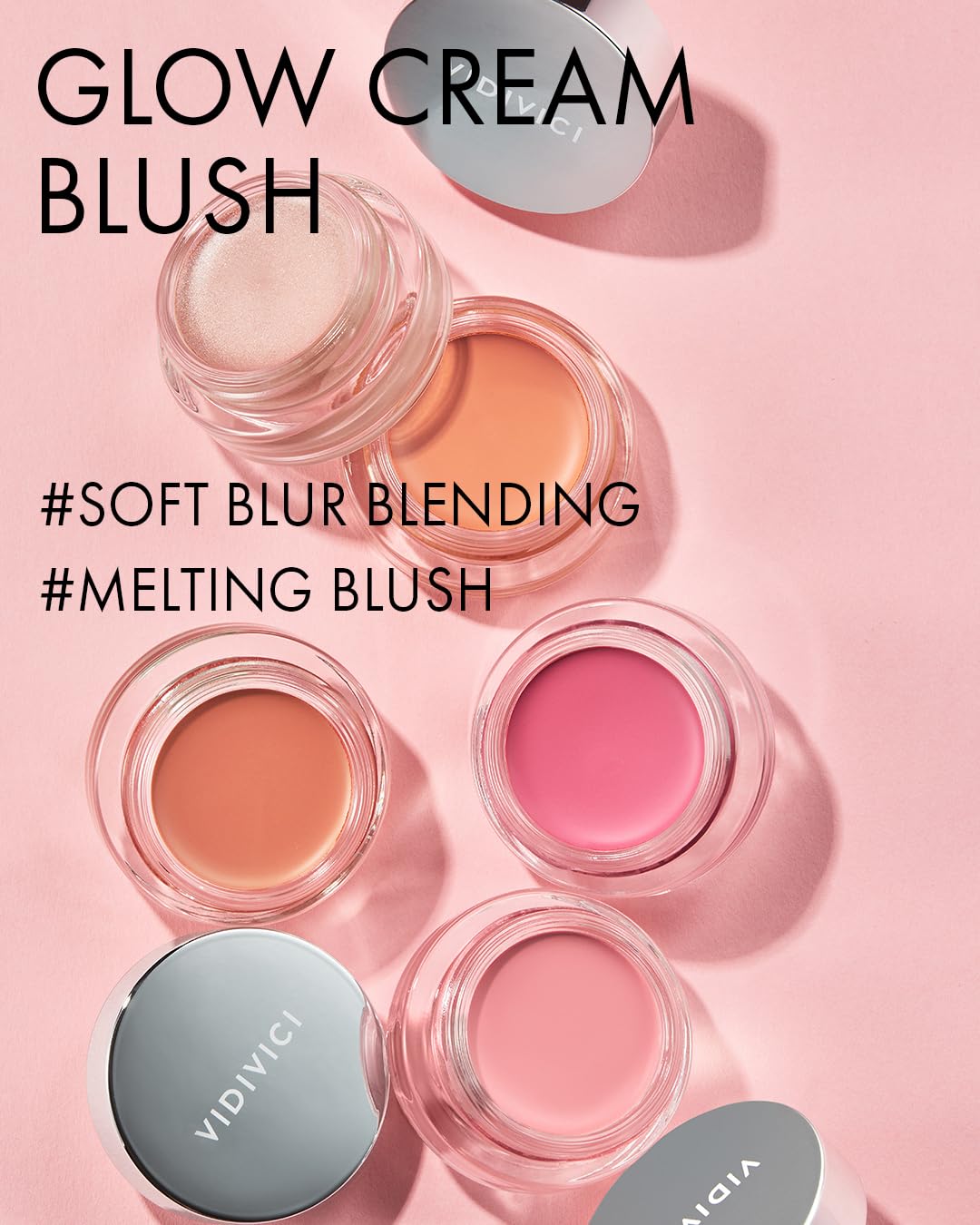 VIDIVICI Millennial Glow Cream Blush 01 Gardenic Pink - Creamy Face Cheek Blusher for Smooth & Silky Skin - Soft Satin Finish with Natural Color - For Fair to Light Skin Tone, 0.21 oz.