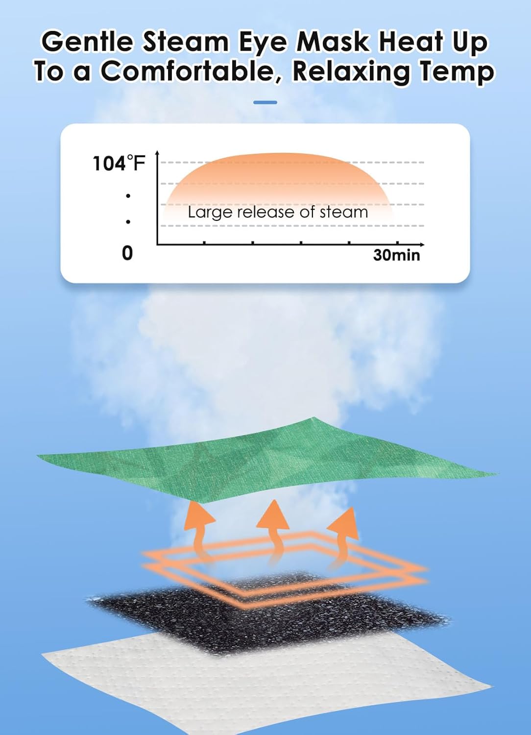 - The Best Solution for Dry Eyes: The steam eye mask releases gentle steam during warm compress, which penetrates deep into the skin, relieving dry eyes and fatigue, moisturizing the eyes, reducing eye puffiness and dark circles.