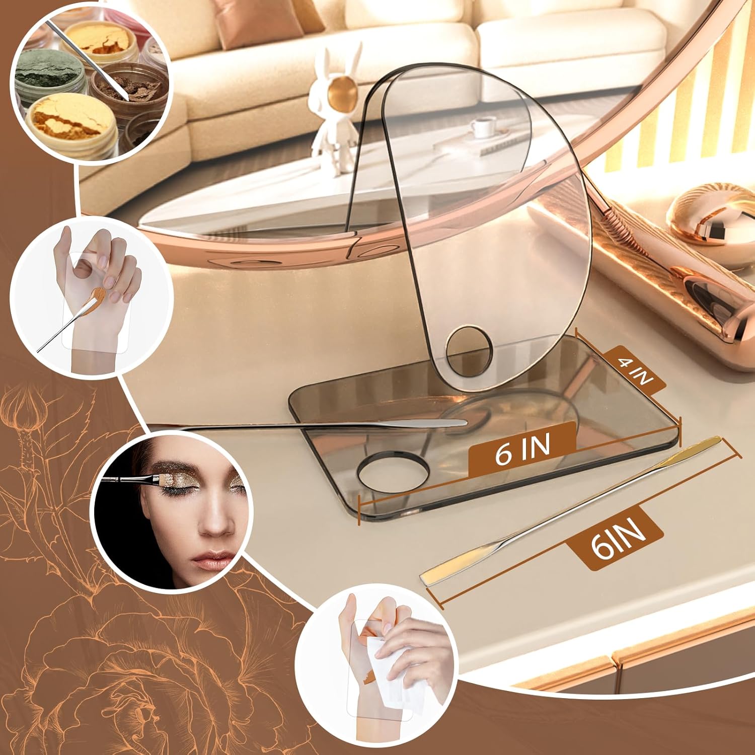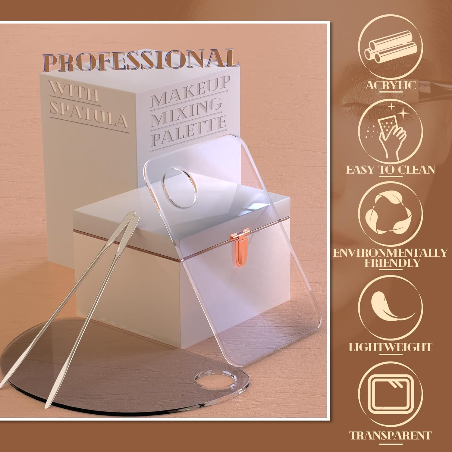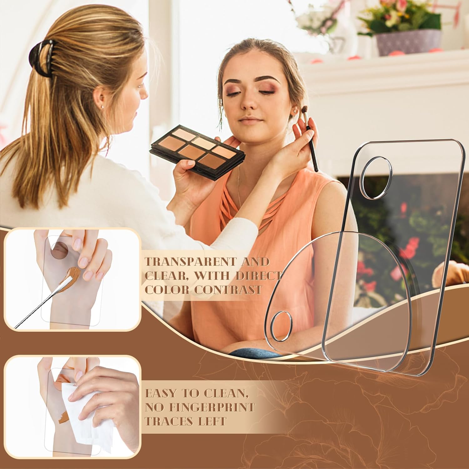 - 3【Easy to Clean】Makeup mixing palette of high-quality acrylic material, blunt edges, no rust, no deformation, with wet paper towels or water can be quickly cleaned up, can be recycled again and again, the material can be recycled.