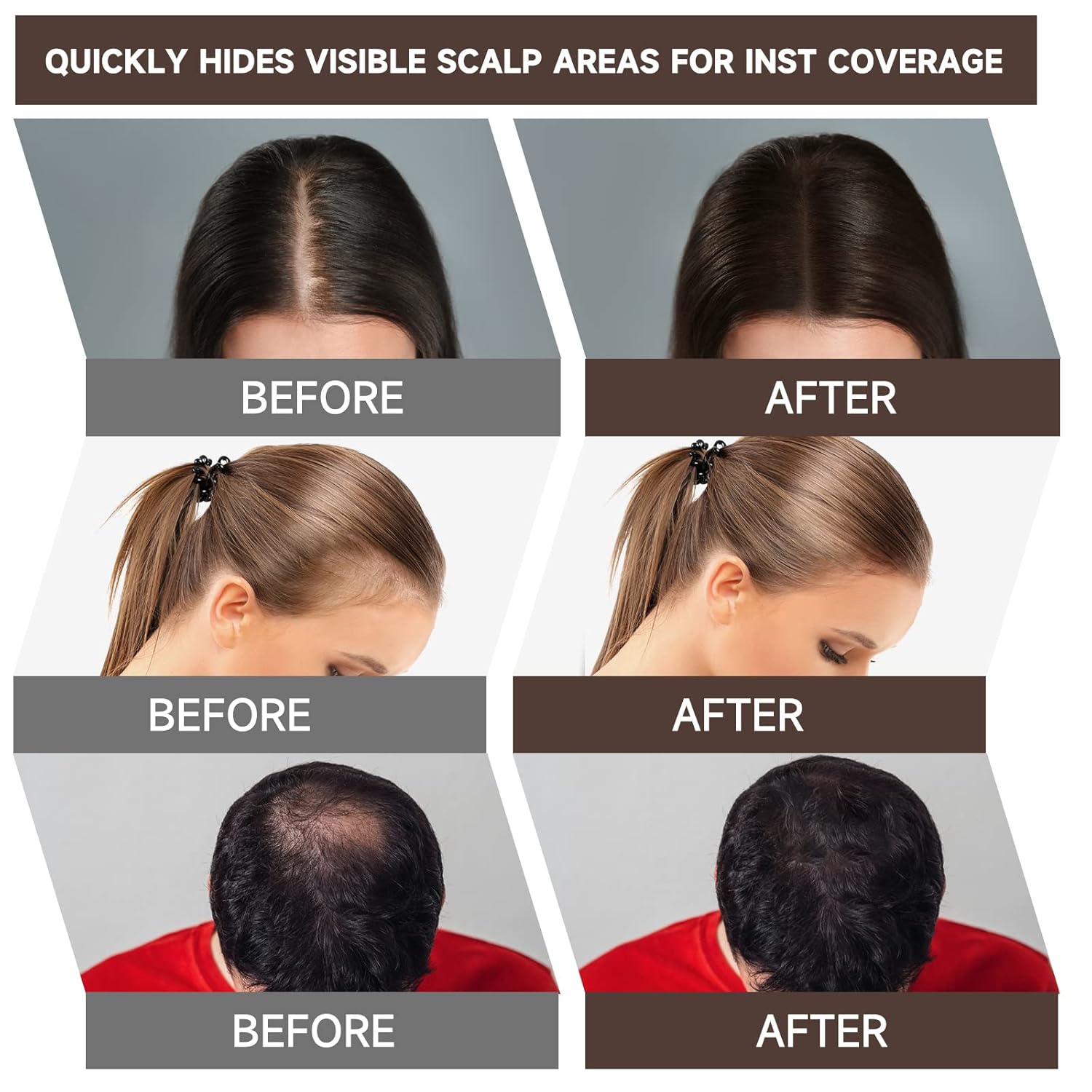 - 【Quick Accurate Hair Root Touch-Up】 Say goodbye to gray hair roots with ease! Our hairline color powder uses a powder puff to accurately cover roots, leaving your hair voluminous and vibrant. The color blends subtly with your natural hair, providing a natural look that's hard to detect.