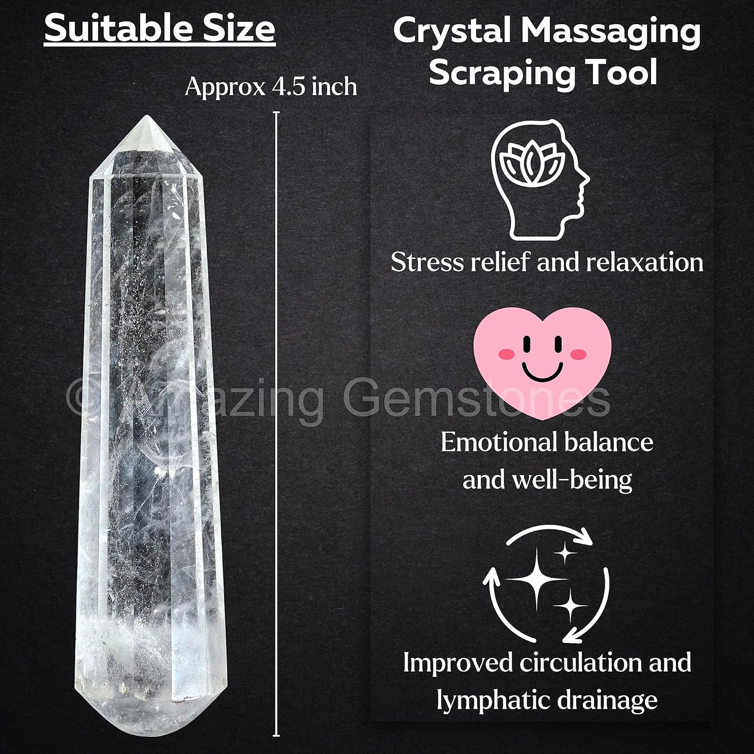 Amazing Gemstone Clear Quartz Crystal Wand Massage Stick - Pelvic Wand Gua Sha for Adults - Crystals and Healing Stones Massage Wands for Adults Gifts (Pointed)