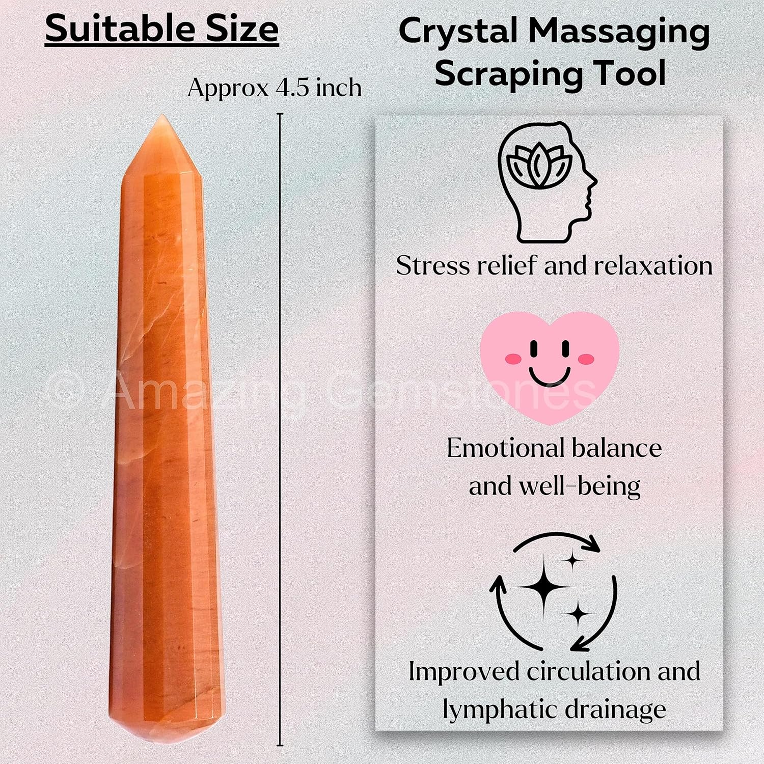 Amazing Gemstone Red Aventurine Crystal Wand Massage Stick - Pelvic Wand Gua Sha for Adults - Crystals and Healing Stones Massage Wands for Adults Gifts (Pointed)