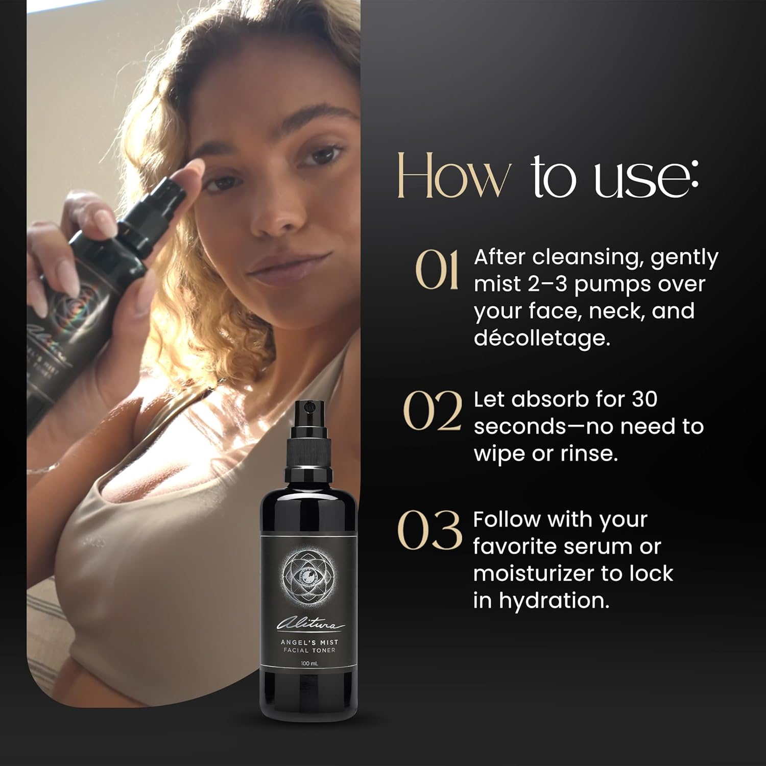 Alitura Angel's Mist Facial Toner – Hydrating & Revitalizing Face Spray with 97% Organic Ingredients – Refreshes, Tightens & Balances for All Skin Types – 100ml