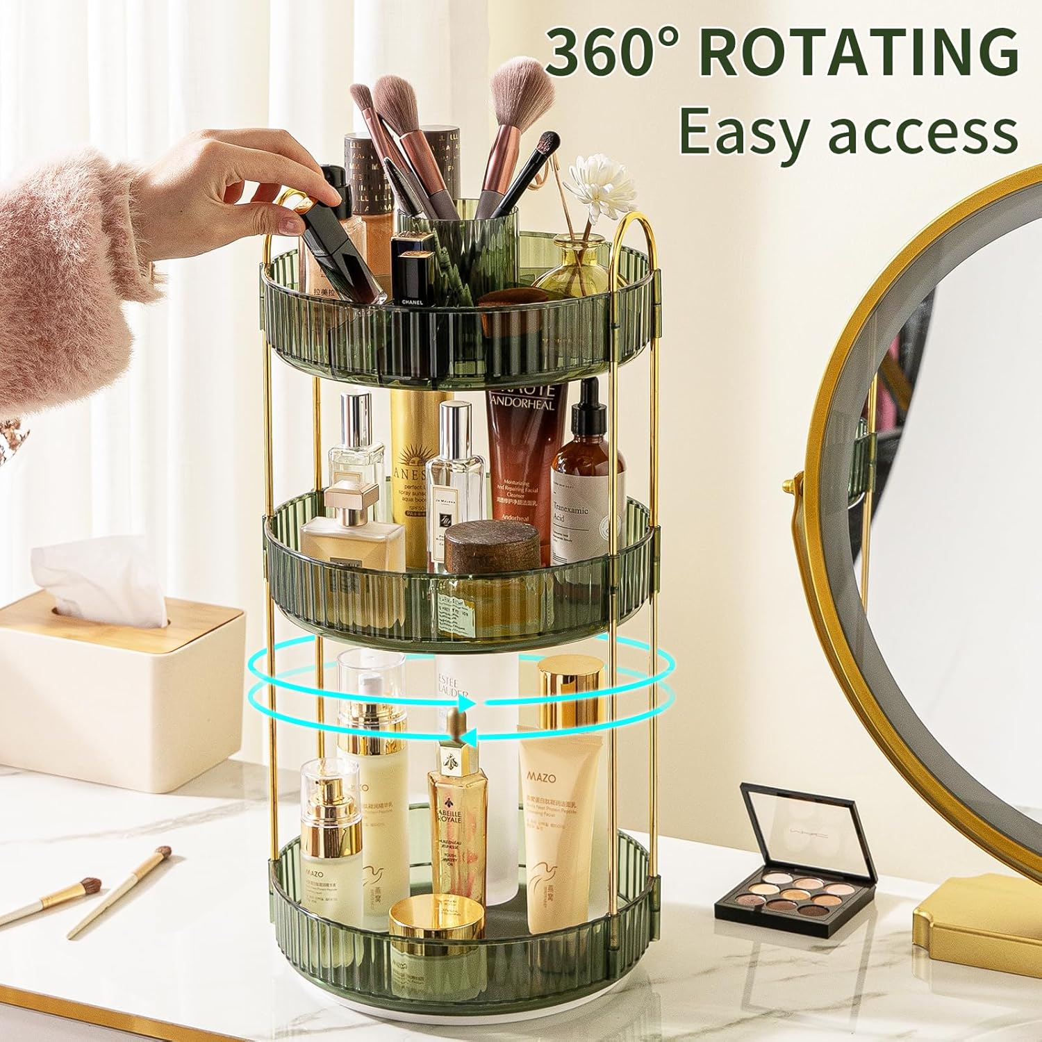 360° Rotating Makeup Organizer, Large-Capacity Skincare Make Up Storage 3 Tier Perfume Organizers Cosmetic Dresser Organizer with Makeup Brush Holder, Fits Bedroom, Bathroom, Vanity Shelf Countertop