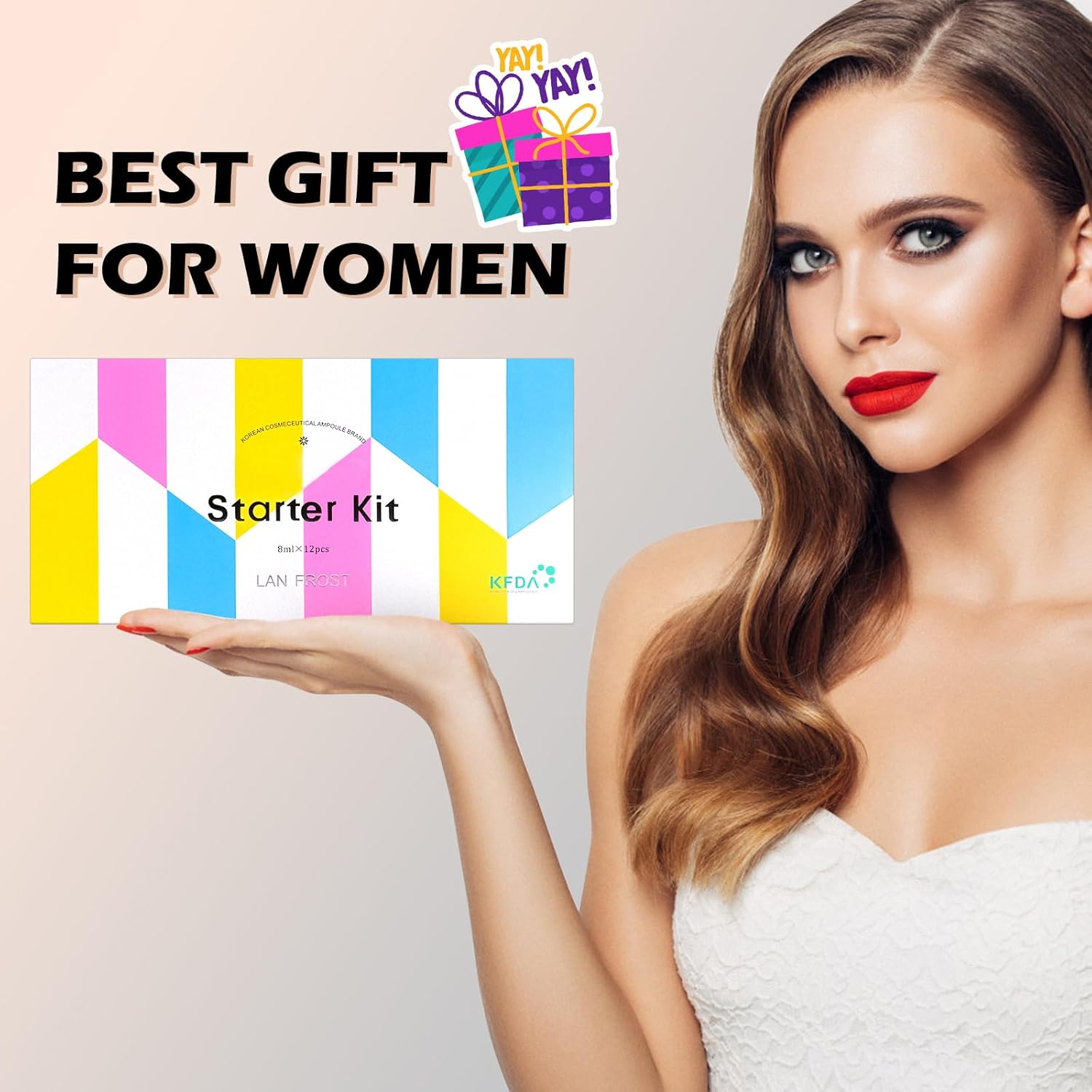 BB Facial Glow Serum Starter Kit Hyaluronic Acid Essence Foundation Skin Care Kit 0.27oz 12 Vials, Combined With Niacinamide and Peptides To Brighten Skin Tone Anti-Aging Foundation Light Rose
