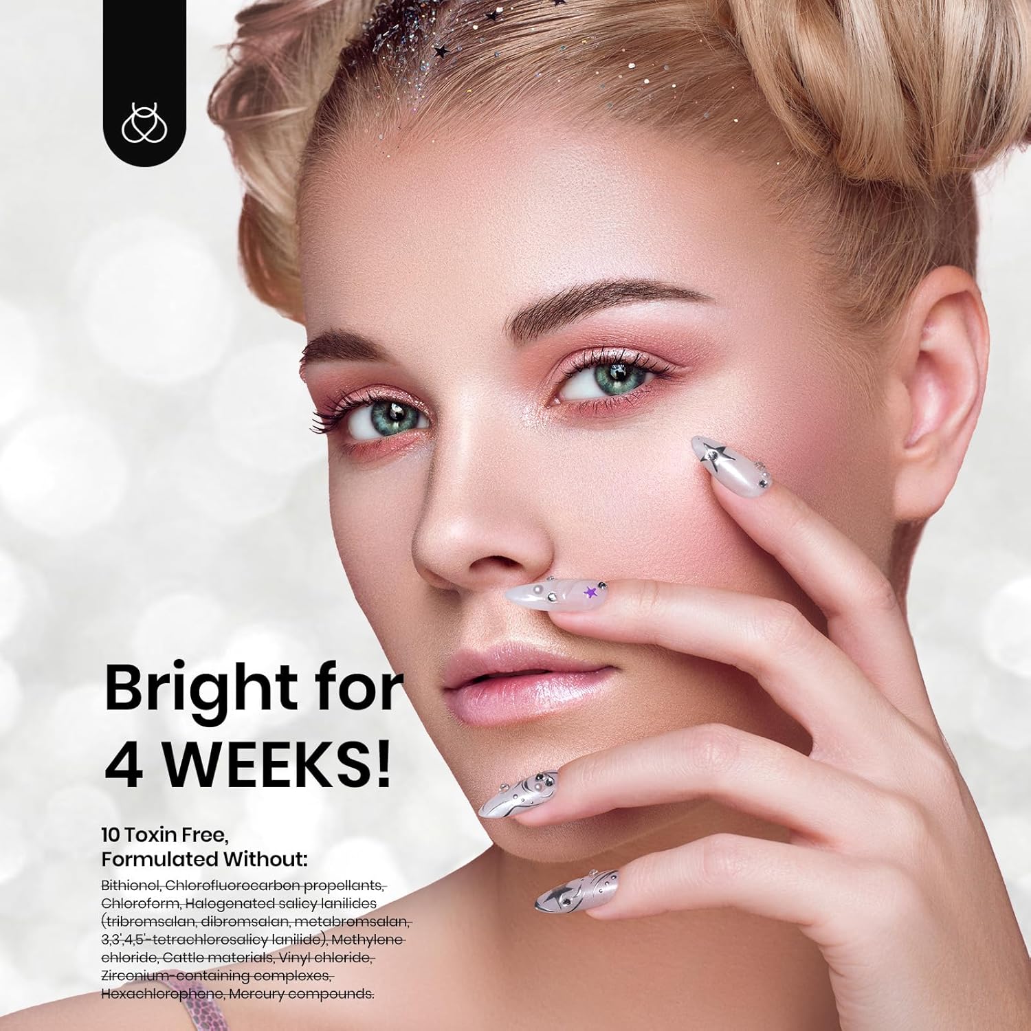 - 【French Tip Gel Polish】Beetles metallic silver nail polish perfect for those trendy squiggly lines bstract painting that are so popular now… also works perfect for adding a French line! Allowing you to have salon-quality nails at home for multiple seasons.