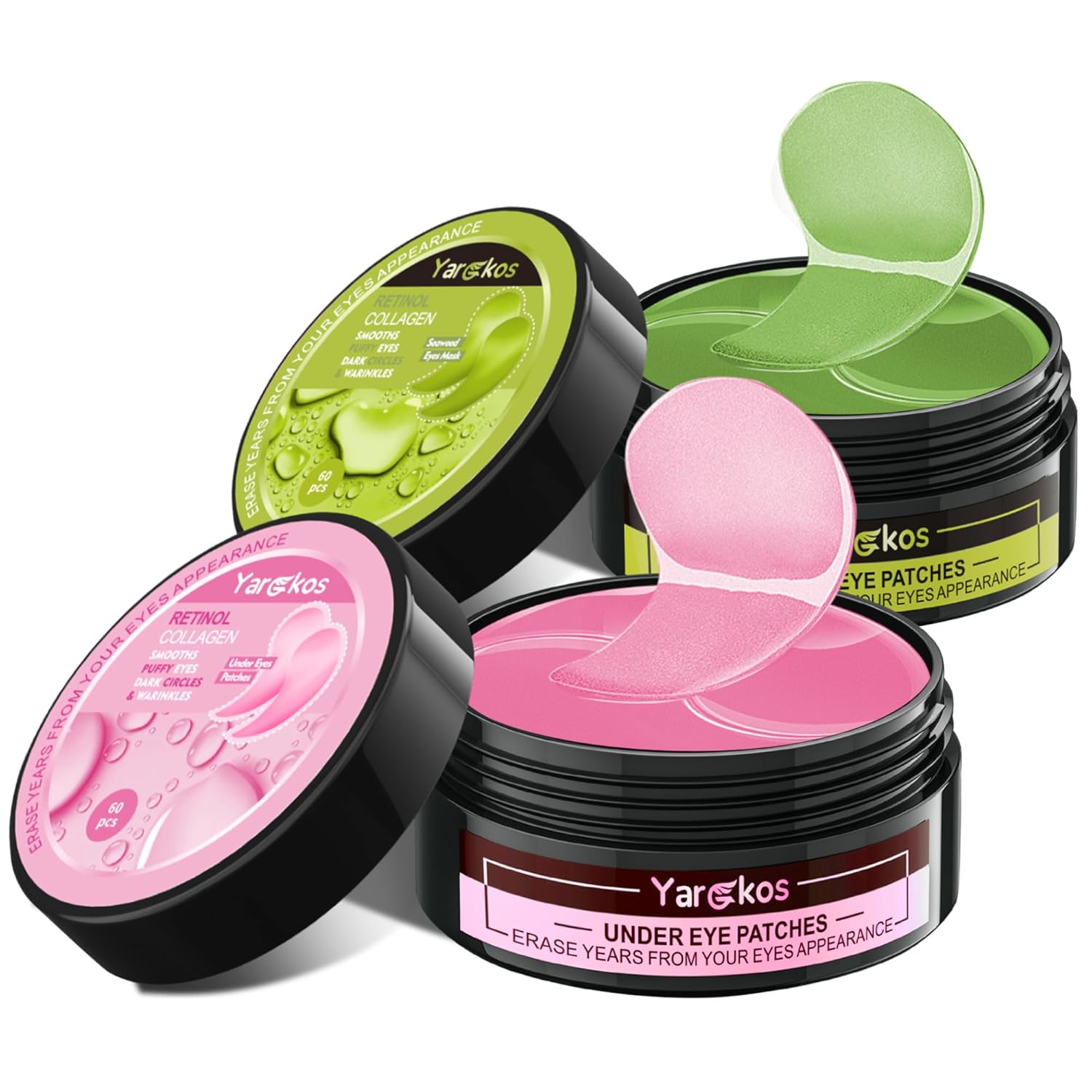 - TOP EYE MASK TREATMENT - Eyes are the first things people notice. Stay-up-late, and poor sleep quality impact your eye skin. Yargkos brings both men and women perfect under eye masks treatment for internalizing and nourishing the skin around the eyes to efficiently repair the damaged area under the eyes. Eye mask set includes a can of green eye patch and a can of pink eye patch. Each can is 60 picecs, 30 pairs.