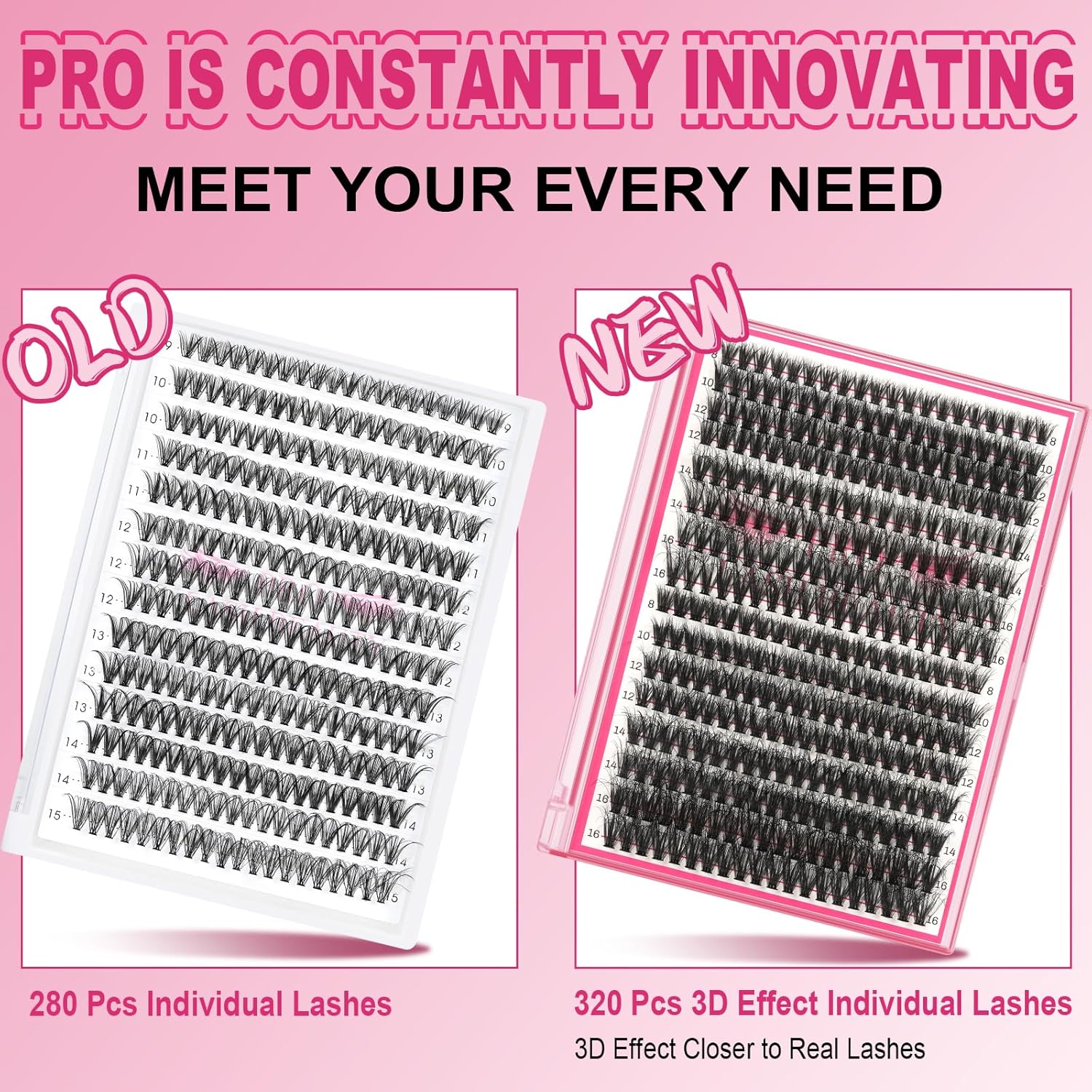 - Mix Lengths And Styles: You can get 320pcs lashes when you buy PRO 3D individual lashes. There are 30D, 40D, 30+40D, 40+50D styles. Also, there are different lengths cluster lashes to choose. You can freely choose to match individual lashes according to your needs on different occasions. PRO can meet your diverse needs.