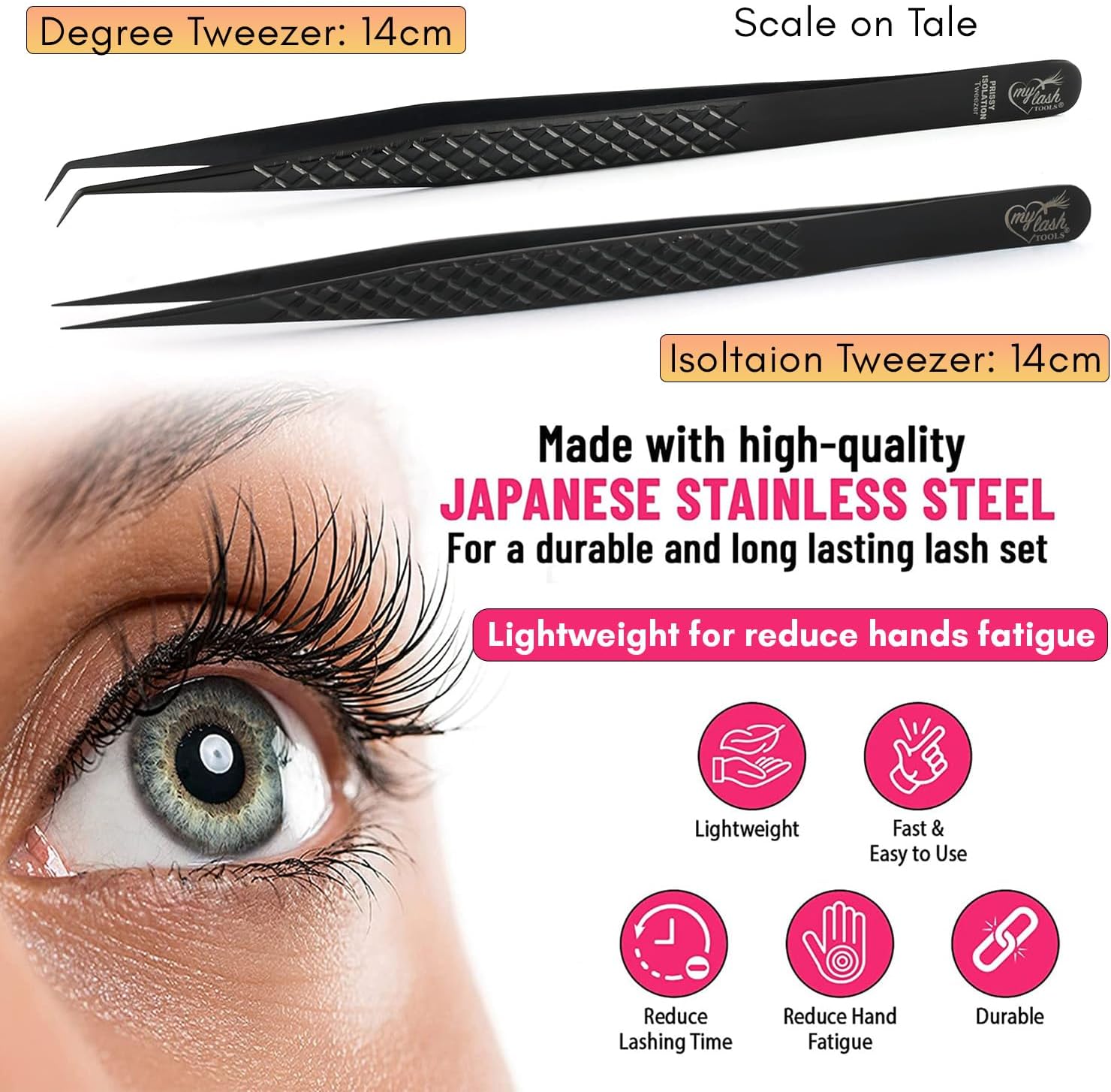 My Lash Tools Eyelash Extension Curved Degree & Straight Tweezers set for Isolation Lash Extensions 14cm, Best for Individual Isolation & Classic Lashes Stainless Steel Eyelash Twisers (Tweezers set)