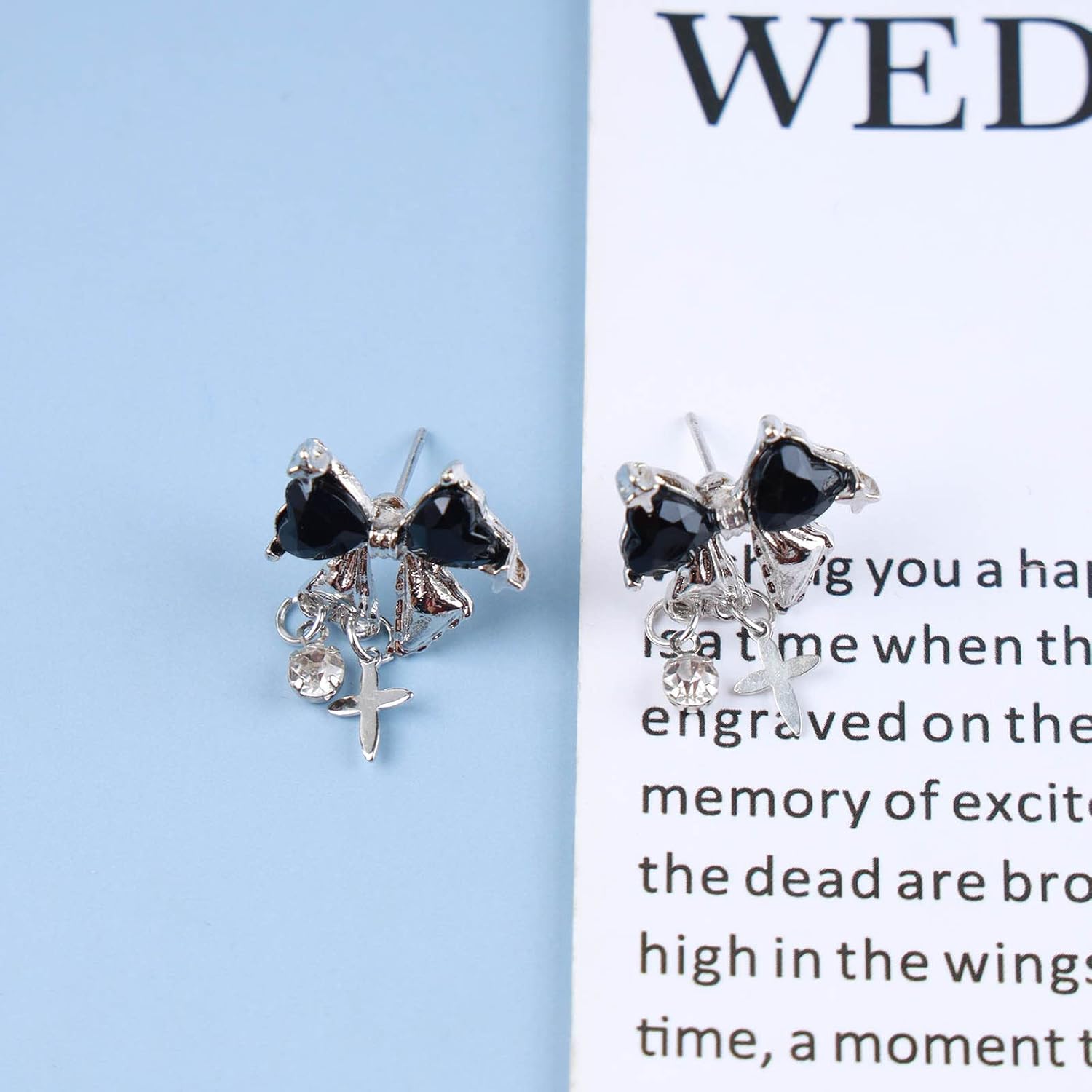 Vintage Crystal Bow Earrings Black Onyx Stud Earrings Silver Tiny Cross Drop Earrings Sparkly Cz Rhinestone Bow Earrings Jewelry for Women