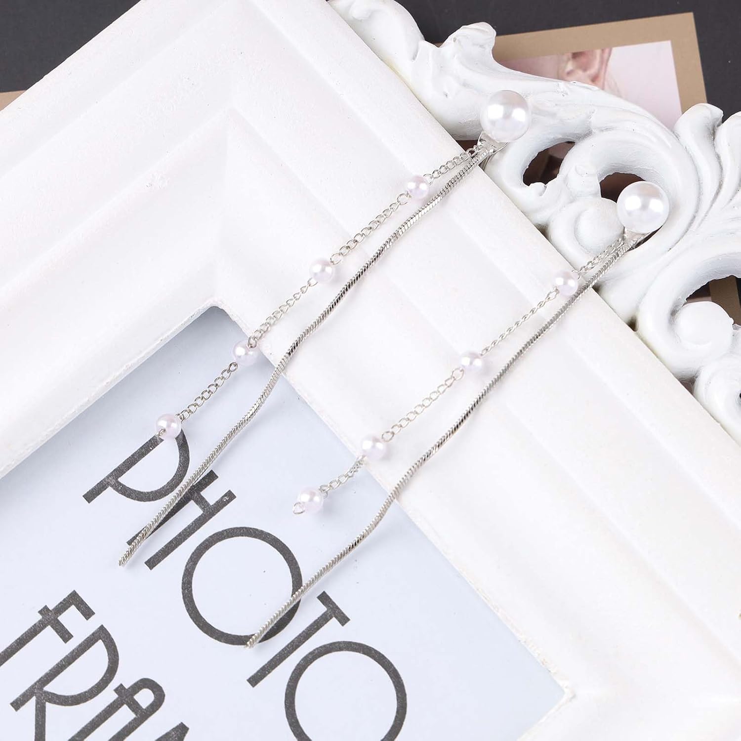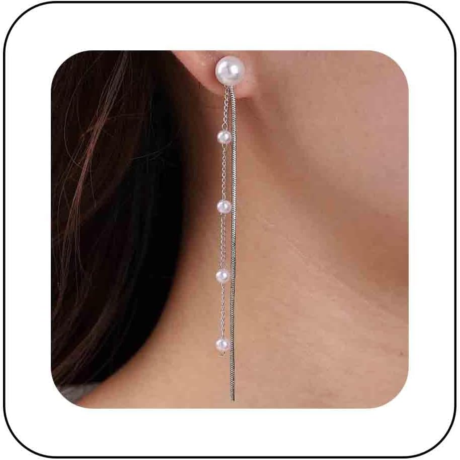 Vintage Pearl Dangle Earrings Long Pearl Chain Earrings Silver Pearl Tassel Drop Earrings Tiny Pearl Bridal Earrings Jewelry for Women