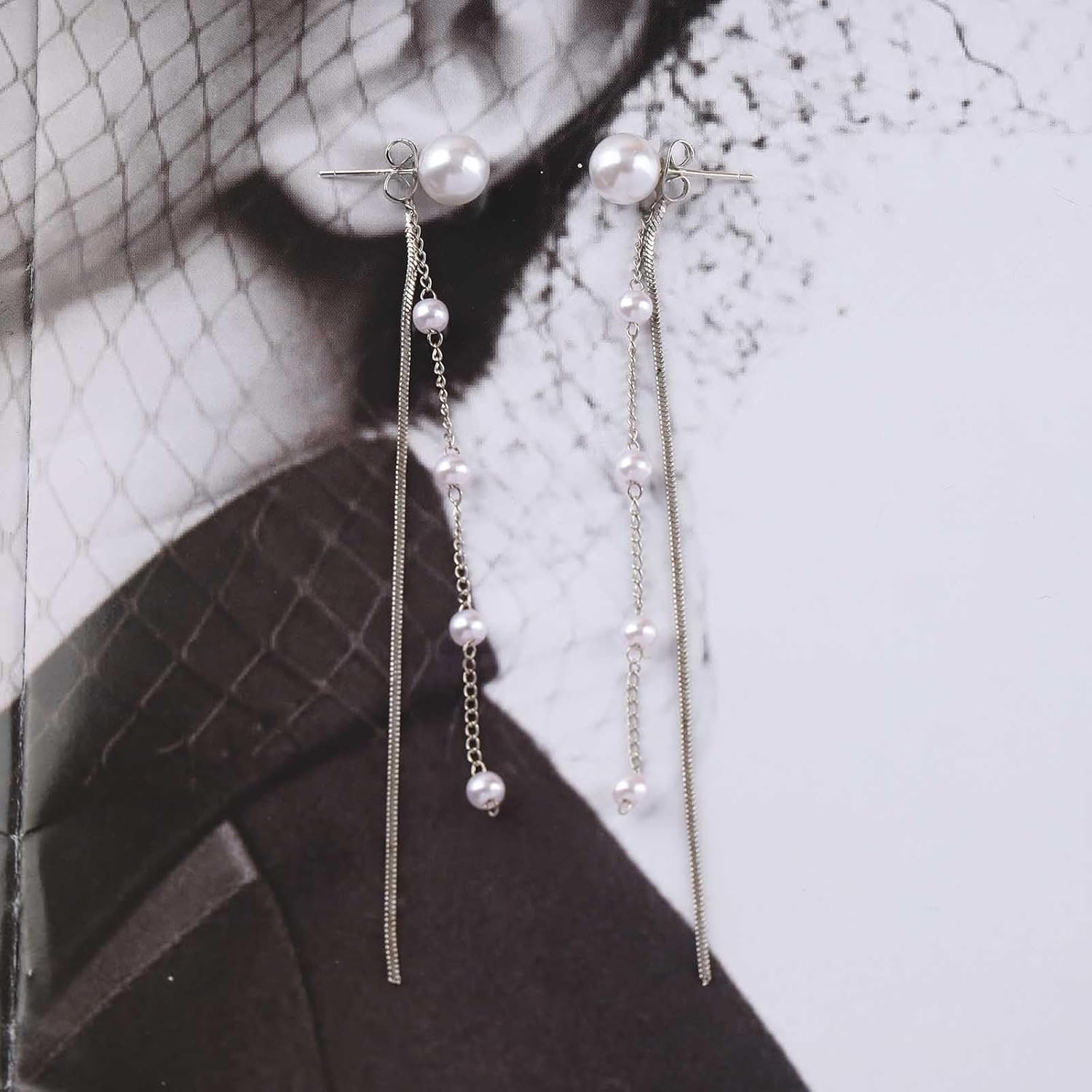 - Long pearl chain earrings.Item design:Diversify Collocation.Used to Groom Your the Ear for a More Layered Look , It is Wonderful Everyday Jewelry,This Earrings Pins is Very Trendy Designed in a Minimalist Style.