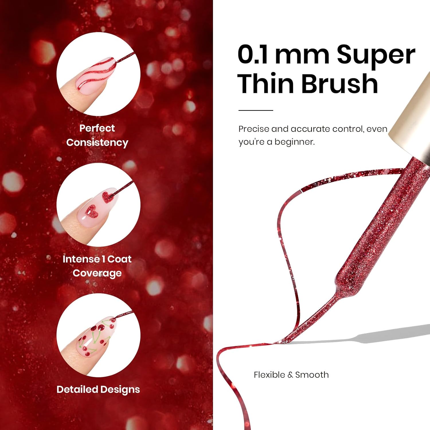 - Nail Art Gel Liner Polish Precise Brush for Effortless Designs: A Fine, flexible brush ensures smooth lines and intricate patterns. The special bottle design minimizes dripping for a cleaner application.