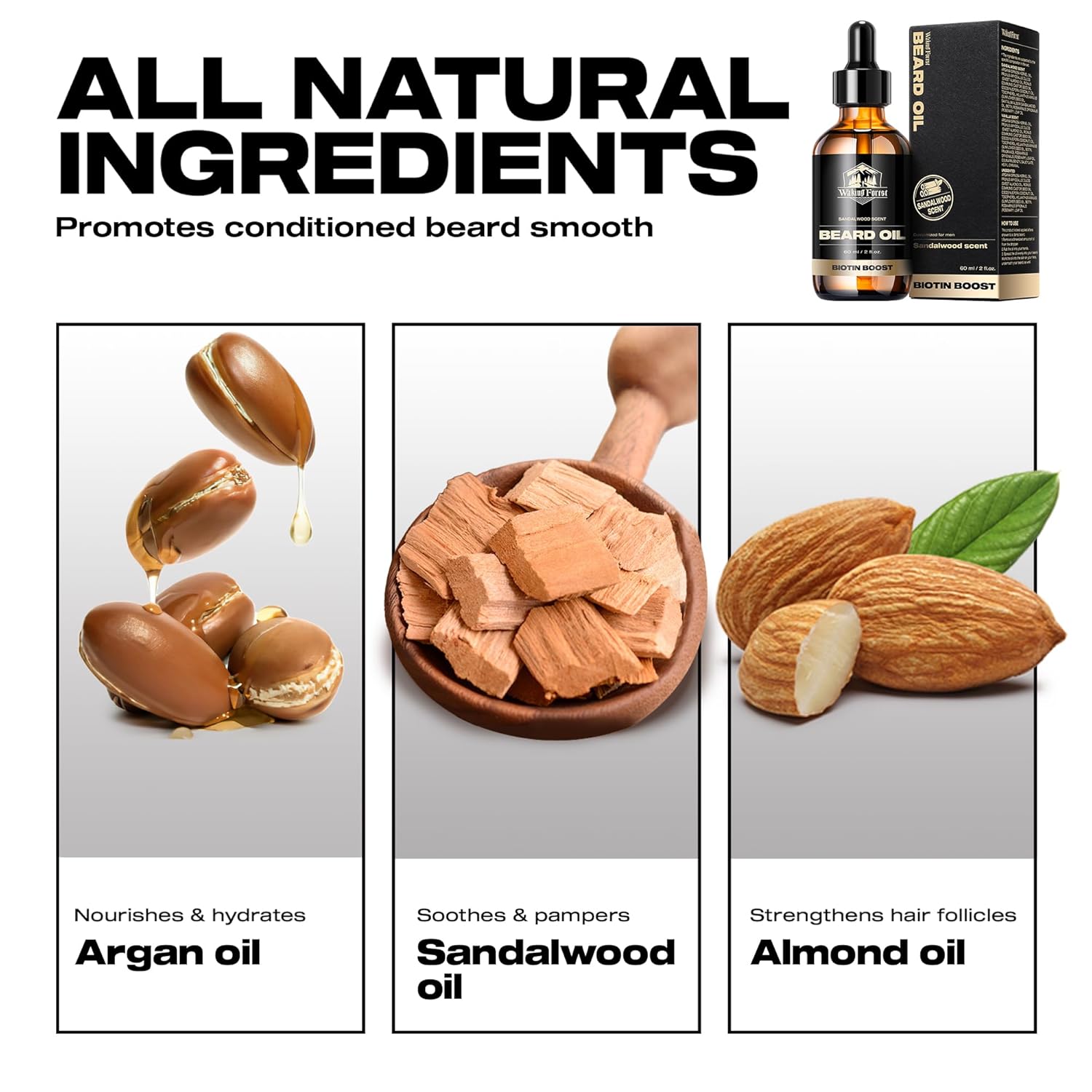- Natural Ingredients: Beard care, the way nature intended; Dive into hydration with Argania and Almond, moisturize deeply with Castor, and shield with Vitamin E; As Sandalwood beard oil relaxes, Rosemary energizes; For the man committed to a natural beard journey
