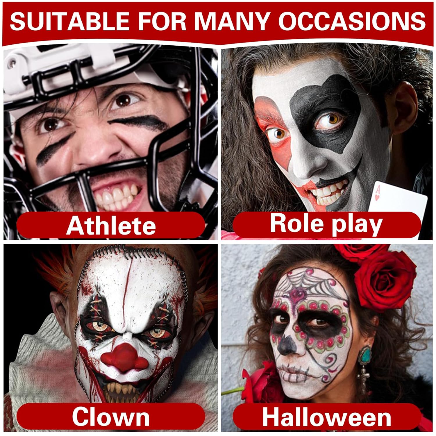 - 【Suitable Occasion】Elevate your Halloween gaming experience with the Ultimate Clown Carnival Makeup Palette. Perfect for theater performances, circus shows, vampires, clown makeup, zombie makeup, pantomime, gothic makeup, Halloween costume themes and more.