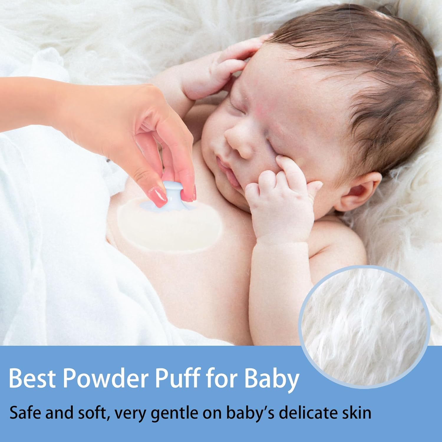 - ă2 Body Powder Puffsă: Considering the daily needs of our customers, our body powder container is equipped with 2 body powder puffs which made of delicate and smooth touch artificial woolďźodorless, individually packaged. The large powder puff with a handle can directly take an appropriate powder apply for body, fast and convenient! The small puff (2.28 ") can take a small amount of powder more delicate and apply evenly on baby skin.