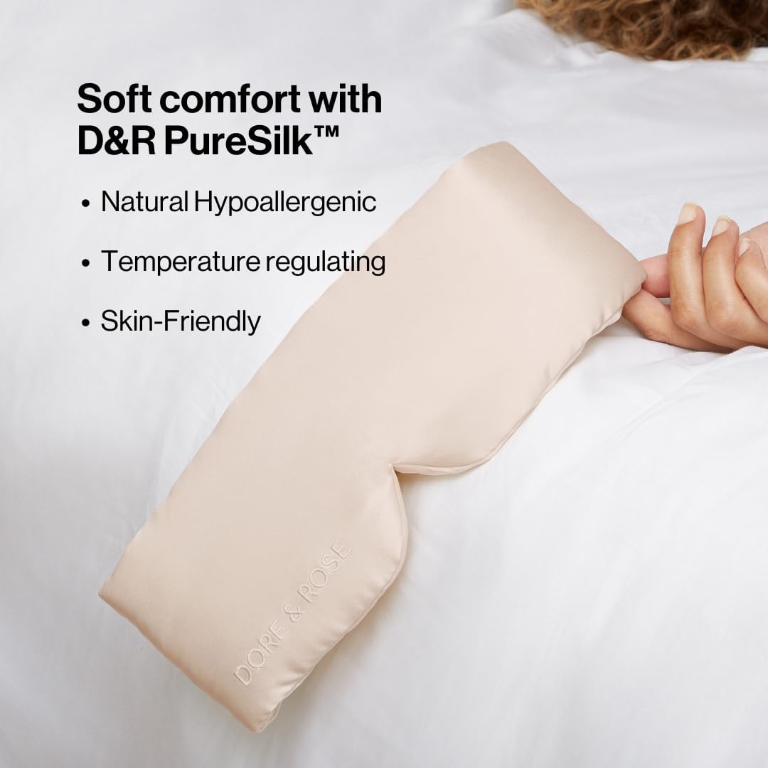 Dore & Rose Deep Sleep Mask Light Blocking, 23 Momme Mulberry Silk Eye Mask, Ultra Soft, Adjustable - Travel Sleeping Mask for Men & Women - Champagne