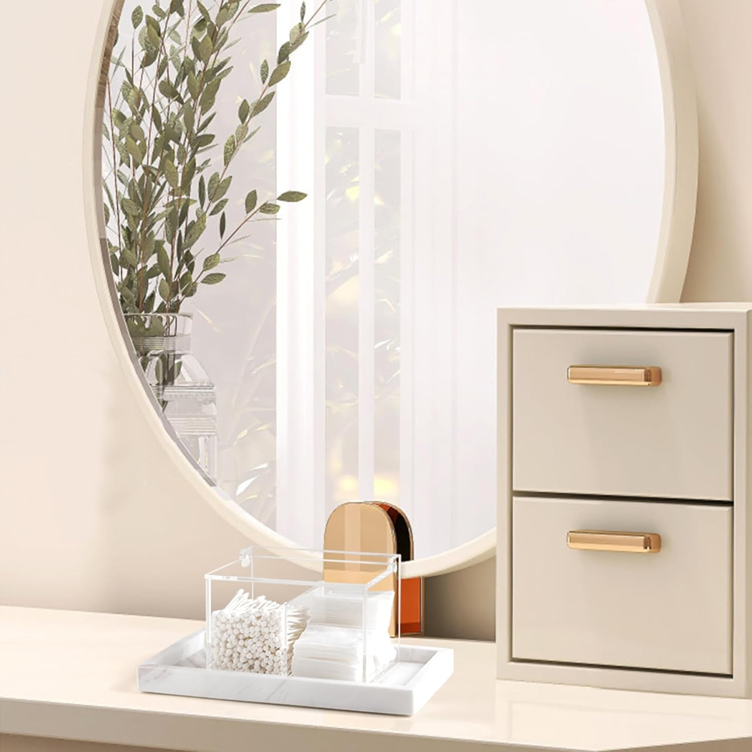 - Unique Design: This cotton ball holder features 2 different compartments and a dustproof lid to keep the items neat and clean. The lid allows you to take the cotton pads out with ease. The crystal clear design makes it a stylish decor for your bedroom, bathroom, office, drawer, and dresser