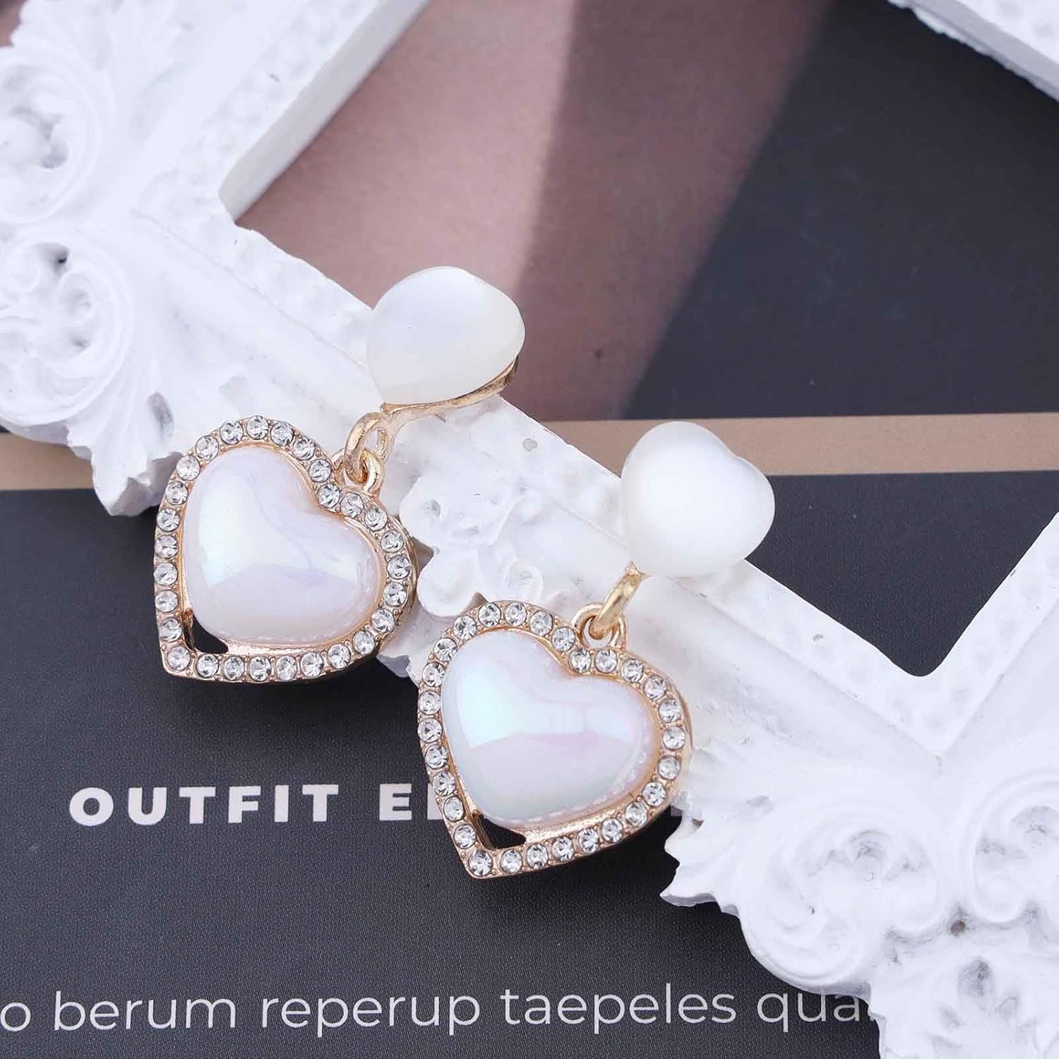 Vintage Rhinestone Heart Drop Earrings Opal Heart Stud Earrings Moonstone Heart Earrings Gold Crystal Heart Dangle Earrings Jewelry for Women