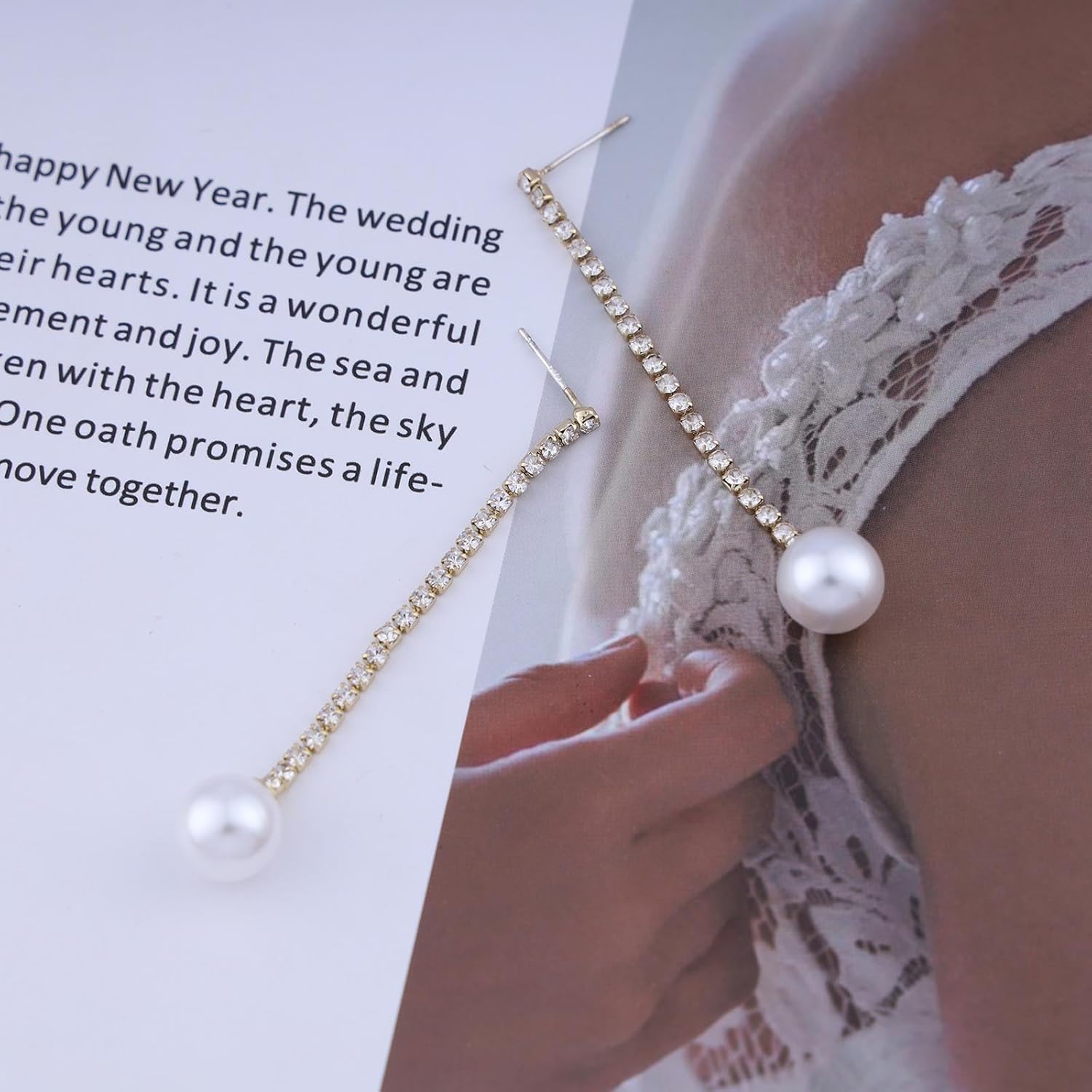 Vintage Rhinestone Pearl Drop Earrings Gold Long Tassel Pearl Earrings Linear Crystal Chain Earrings Cz Rhinestone Tennis Earrings Jewelry for Women