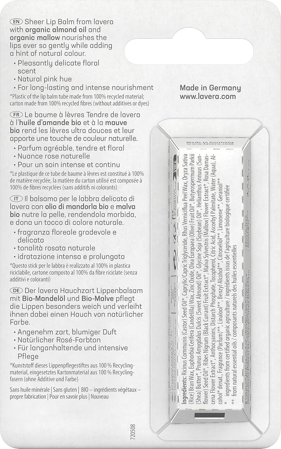 Lavera Organic Sheer Lip Balm New 0.18 oz