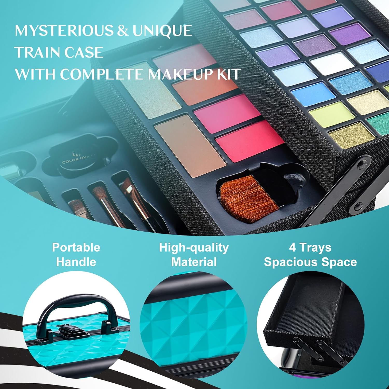 Color Nymph All In One Makeup Kit Comestics Gifts for Girls Teens, Travel Makeup Set 4 Trays Train Case for Beginner Includes Eyeshadow Highlighter Lipgloss Blush Concealer Brush Eyeliner Lipbalm