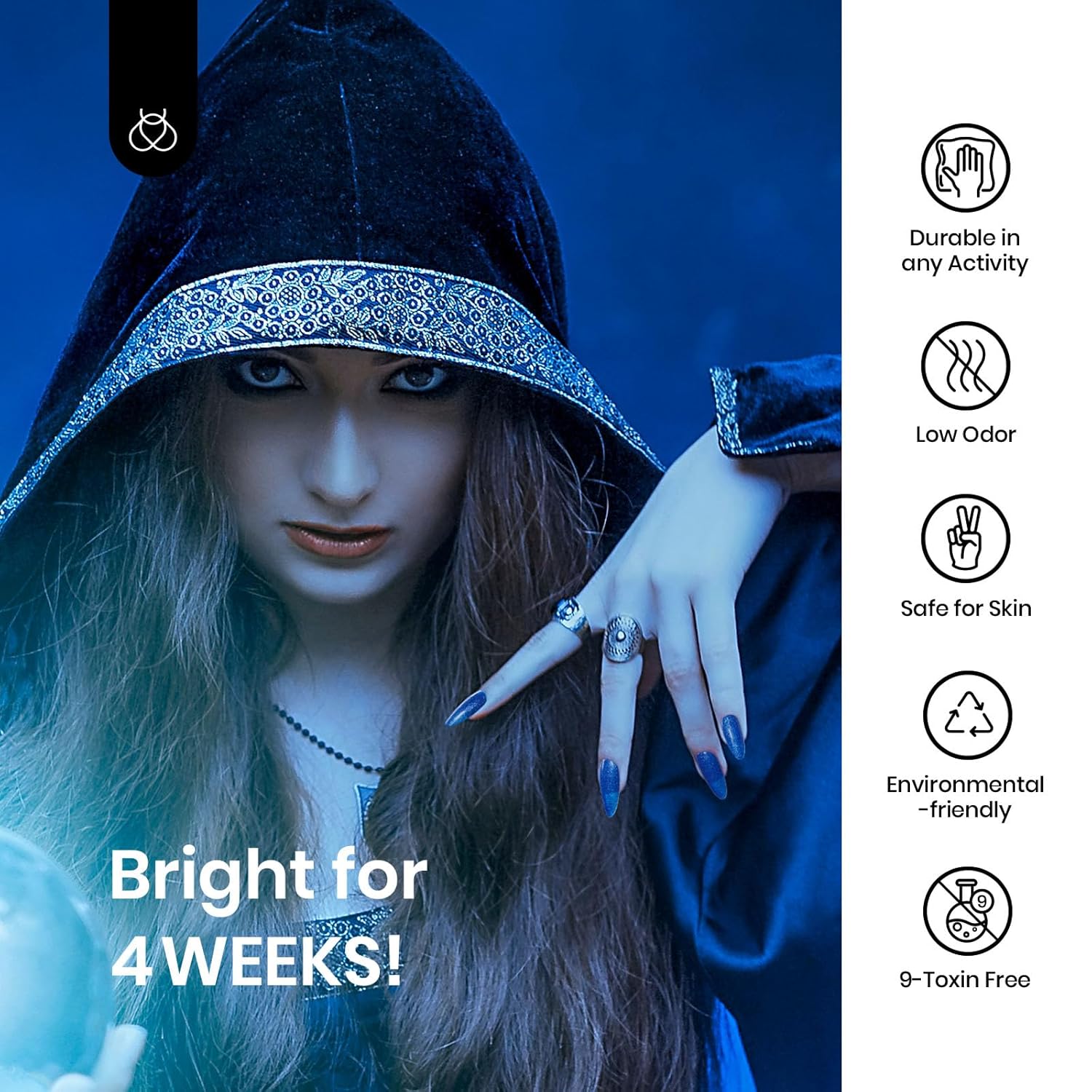 - All Season Gel Polish Set: (UV Lamp Needed) Long-lasting for 28+ days with a perfect shine. Dark shimmer blue purple holiday gel polish set is an ESSENTIAL for everyone!