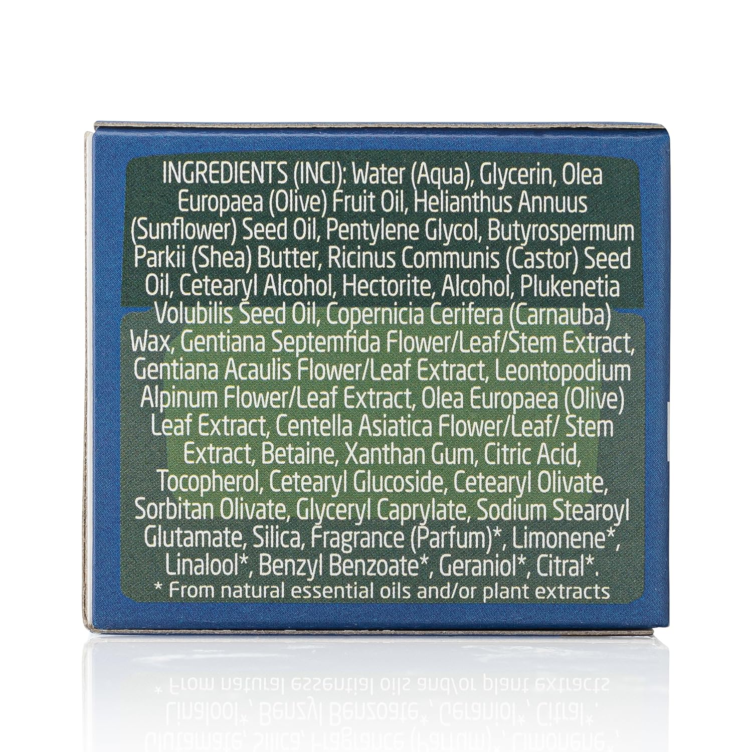 - PLANT-RICH VEGAN* INGREDIENTS: Formulated with skin-soothing blue gentian, edelweiss, and sacha inchi oil. Certified Natural by NATRUE. *Produced in a facility that may also process non-vegan products