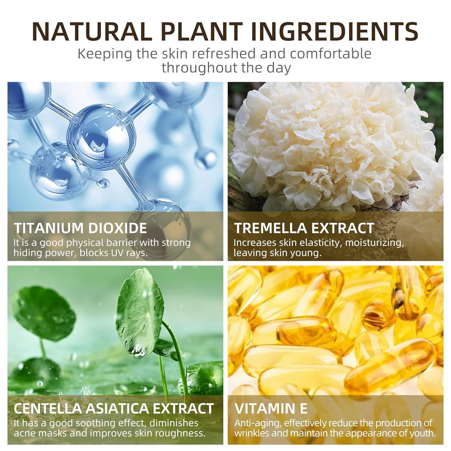 - 【Long Lasting Concealer】 BB cream foundation uses skin-friendly elastic bionic film that presses out an even and smooth cream to create a full coverage base. It brightens skin tone, conceals dark spots, pores and blemishes caused by acne. The delicate, comfortable and breathable BB cream has a regulating effect for 24 hours and does not clog pores.