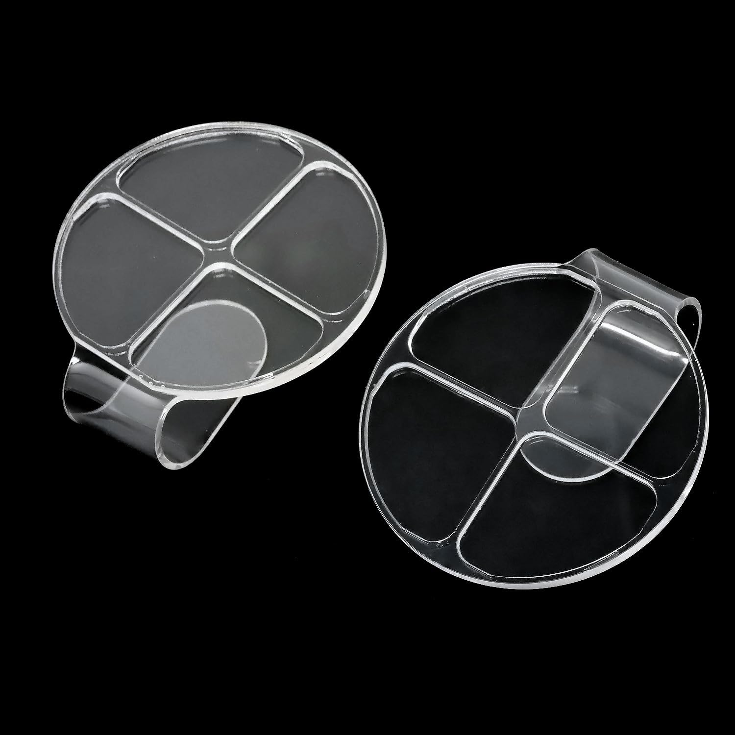 - Quantity:2 acrylic makeup palettes(Round 4-cell with handle).