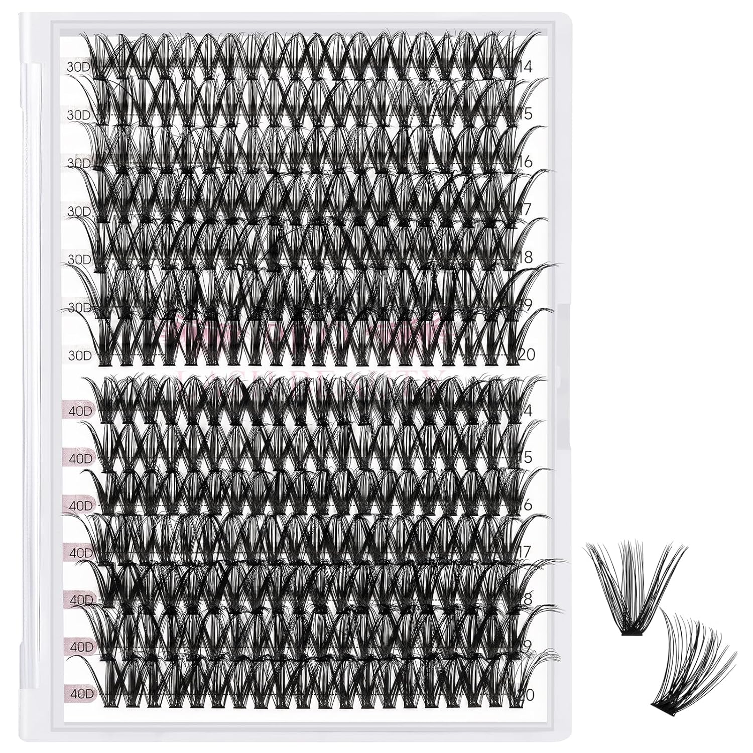 280 Pcs Individual Lashes 40D+50D Mixed Lash Clusters 14 Rows Cluster Lashes that Look Like Eyelash Extensions DIY Lash Extension Self Application At Home (40+50-C-14-20mix)