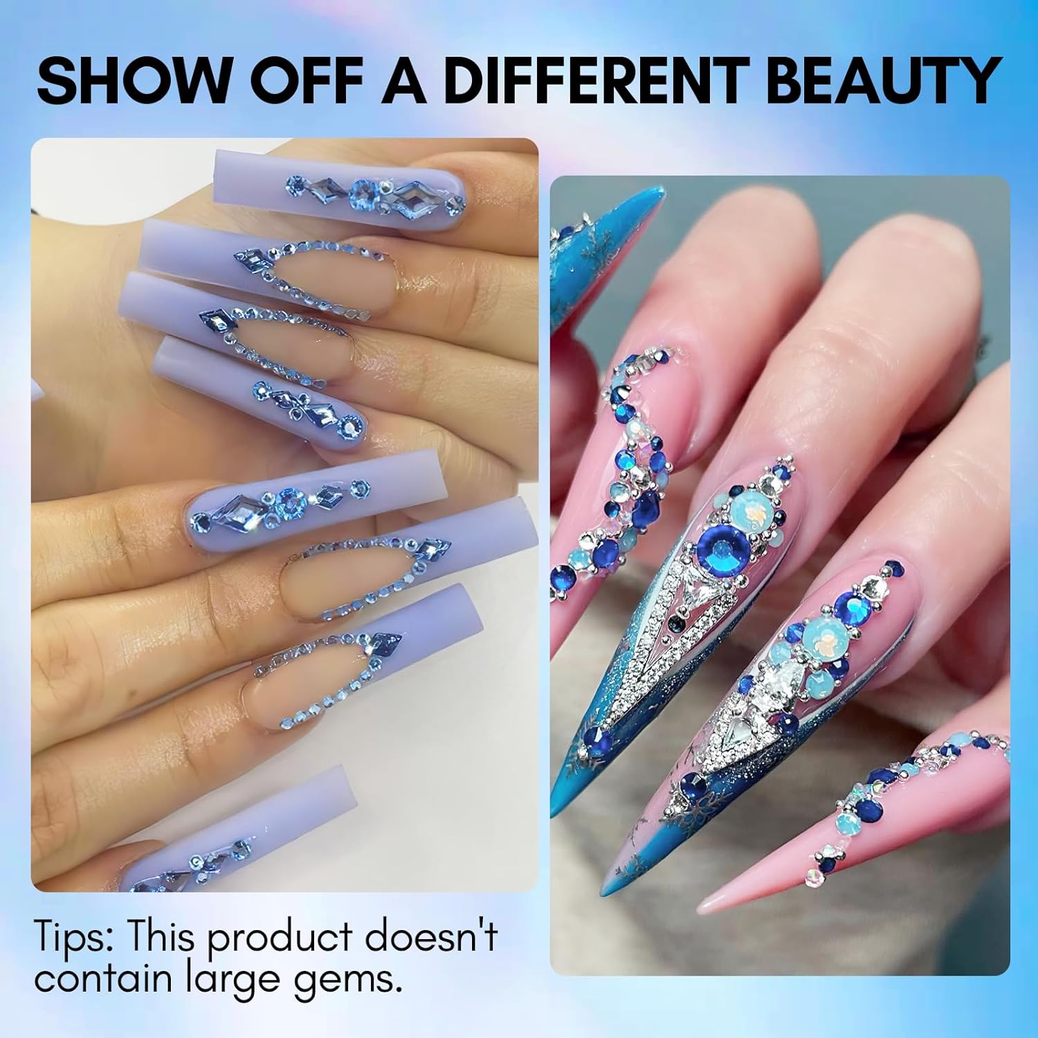 Makartt Blue Nail Rhinestones Flatback Rhinestones Multi-Size Round Crystal Glass Nail Charms Diamonds Nail Jewels for DIY Crafts Makeup Nail Art Supplies Accessories Christmas Gift