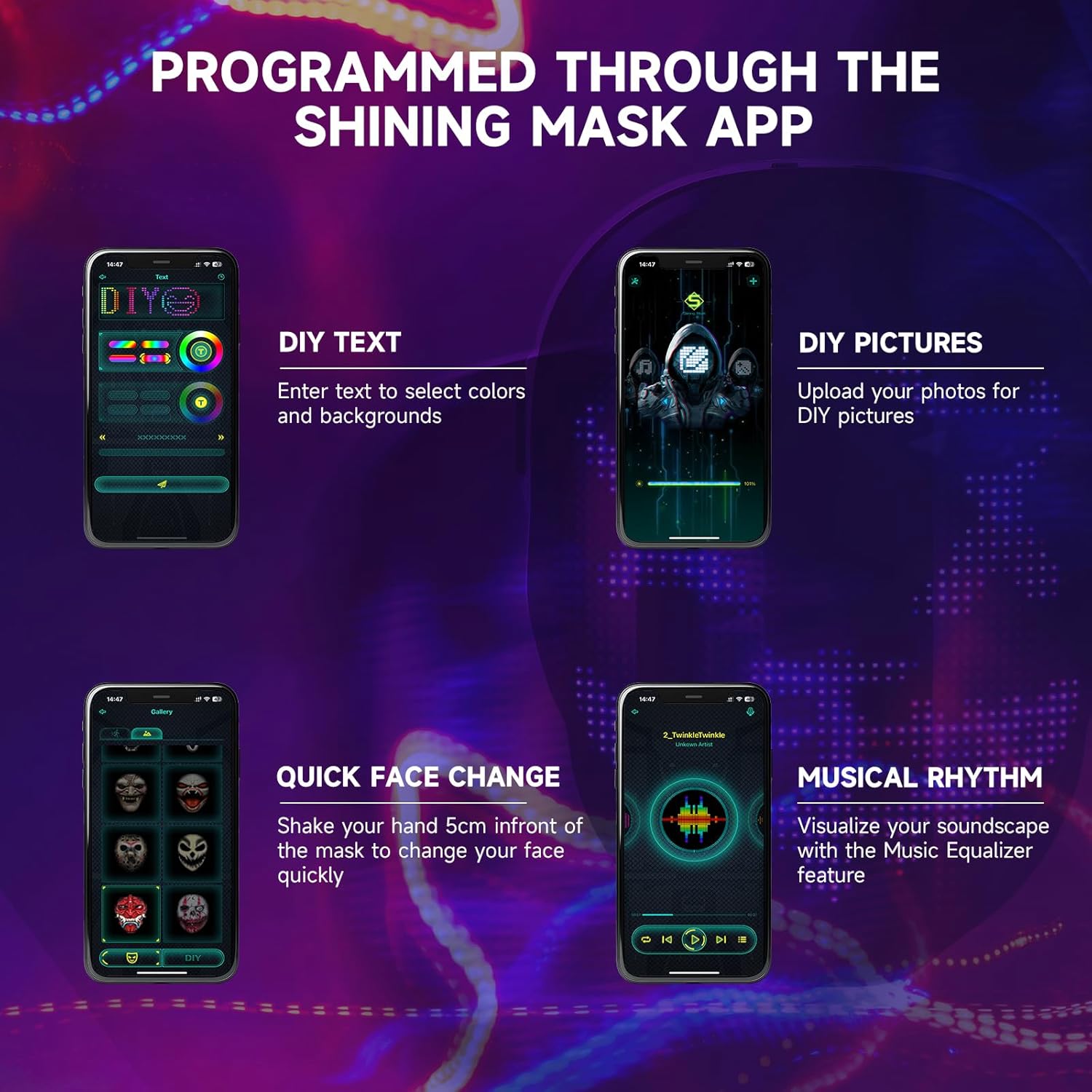- Vibrant Visuals: Featuring 2074 high-brightness RGB LED lamp beads, this light-up mask delivers dazzling colors and smooth animations, ensuring you shine at every event.