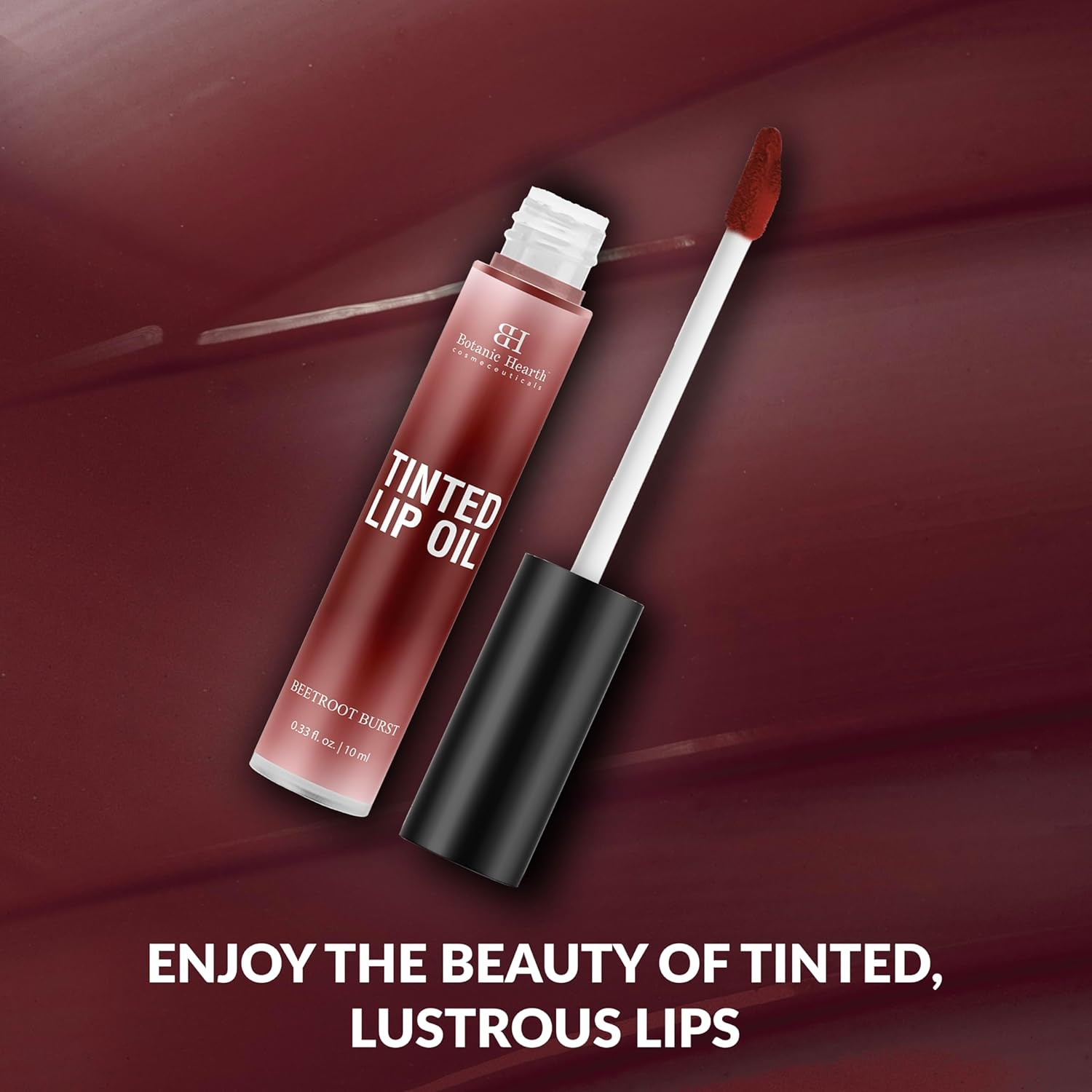 - Natural Tint & Shine: Botanic Hearth Tinted Lip Oil helps add a beetroot-colored maroon tint to lips. It helps make lips glazed & plump and aids in delivering natural shine over continued usage