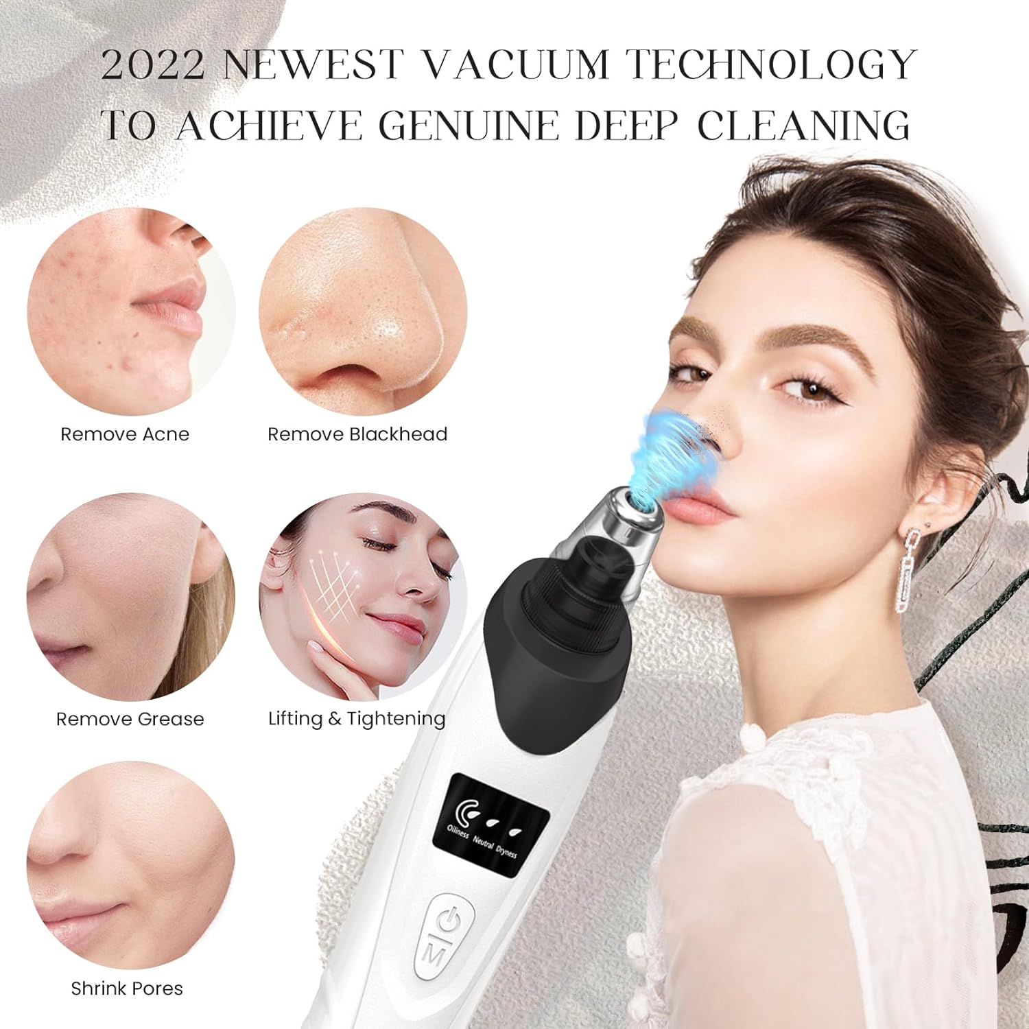 - 【Upgraded Technology Blackhead Vacuum】– Super powerful blackhead remover can be safely used on the face directly achieve deep cleaning and effectively remove blackheads, whiteheads, dead skin, treat acne,grease and makeup residues.which can increase blood circulation and skin elasticity, lessen wrinkle, shrink pores, smooth fine lines without hurting your skin.