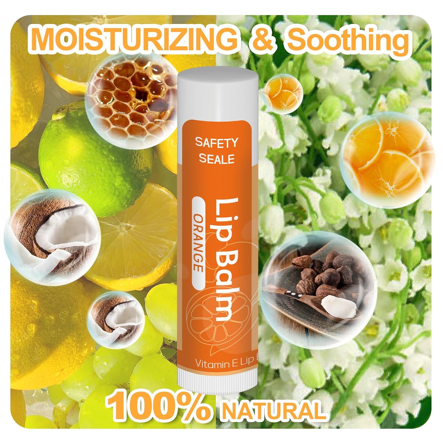- Flavored Lip Balm Collection: Enjoy the delightful scents of lip balms available in 10 natural fruit and plant flavors, including Lily of the valley, mint, vanilla, rose, strawberry, orange, coconut, grape, cherry, and lemon. Personalize your lip care experience