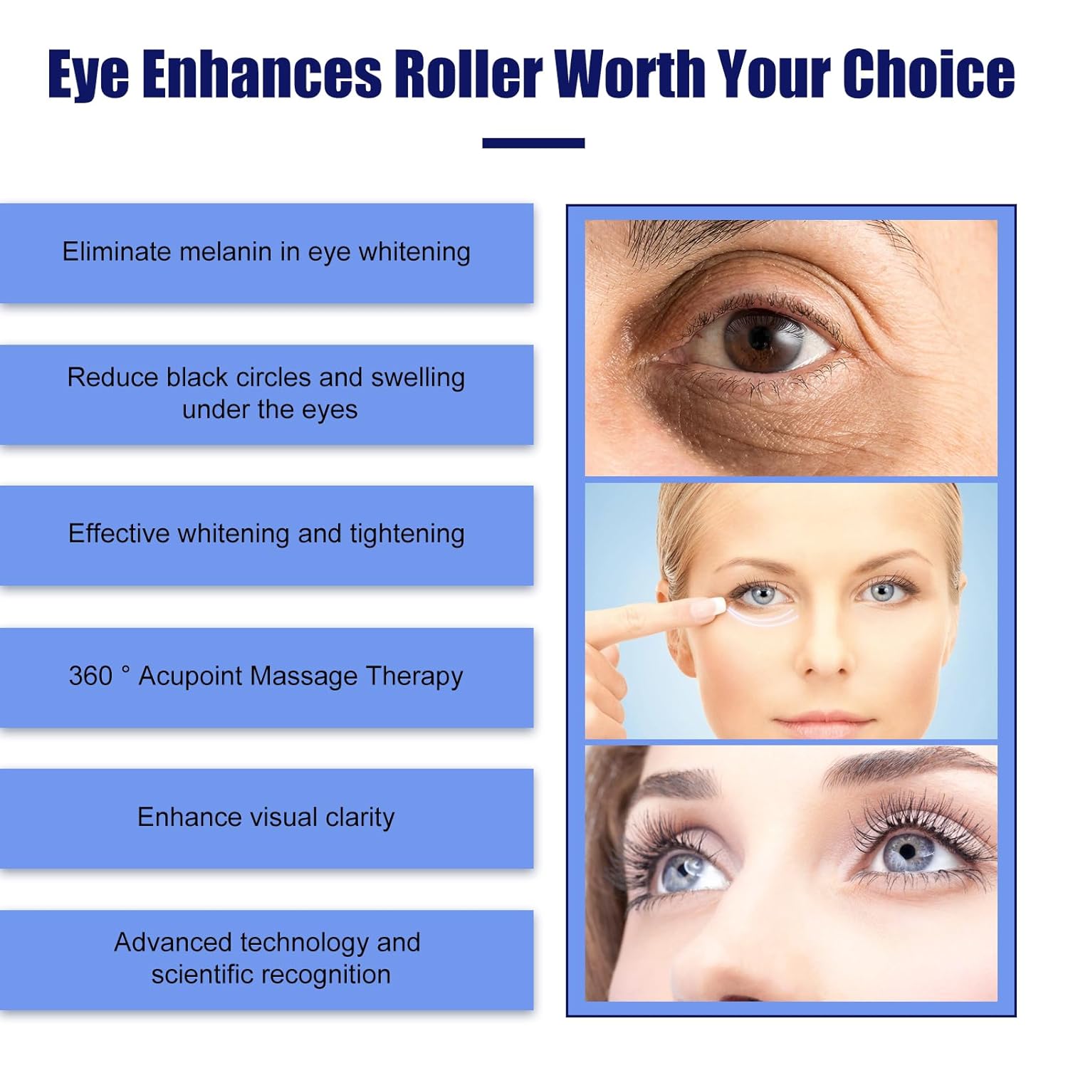 - CONVENIENT & EASY TO USE - Cleansing the under eye area, take an appropriate amount of eye serum by pressing the roller, gently rolling and massaging the skin around the eyes with the roller, then gently patting with your fingertips for absorption.