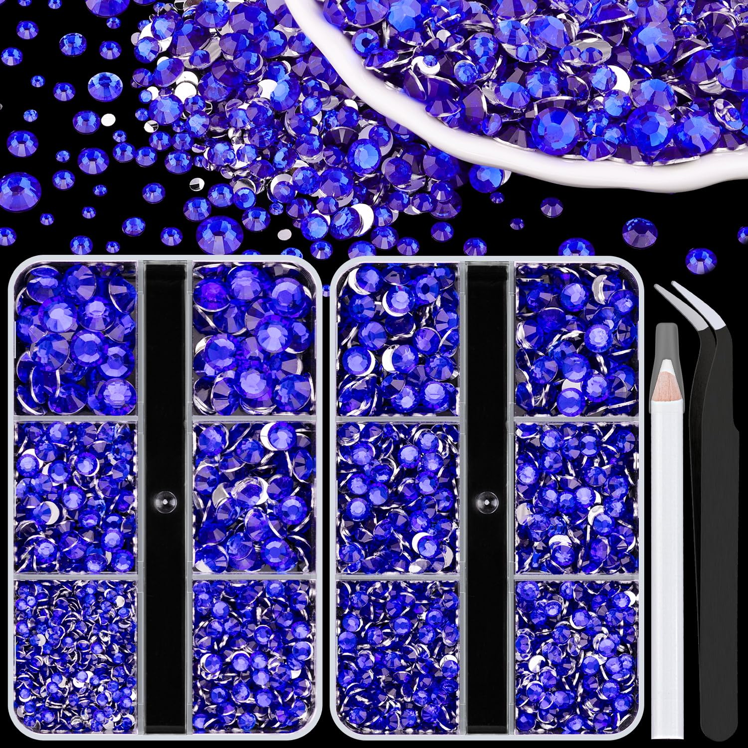 - 💎PACKAGE CONTENT -- This resin rhinestone package includes 2 boxes with 6 grids, featuring a variety of sizes: Box #1 contains 2mm x 1 grid, 3mm x 1 grid, 4mm x 1 grids, 5mm x 1 grids, and 6mm x 2 grids; Box #2 contains 3mm x 2 grids, 4mm x 2 grids, 5mm x 2 grids. 1 tweezers and 1 pickup pen are included for easily picking up of rhinestones. This set offers more large-sized gems, making it perfect for DIY craft decorations, eye makeup, face makeup and nail art.