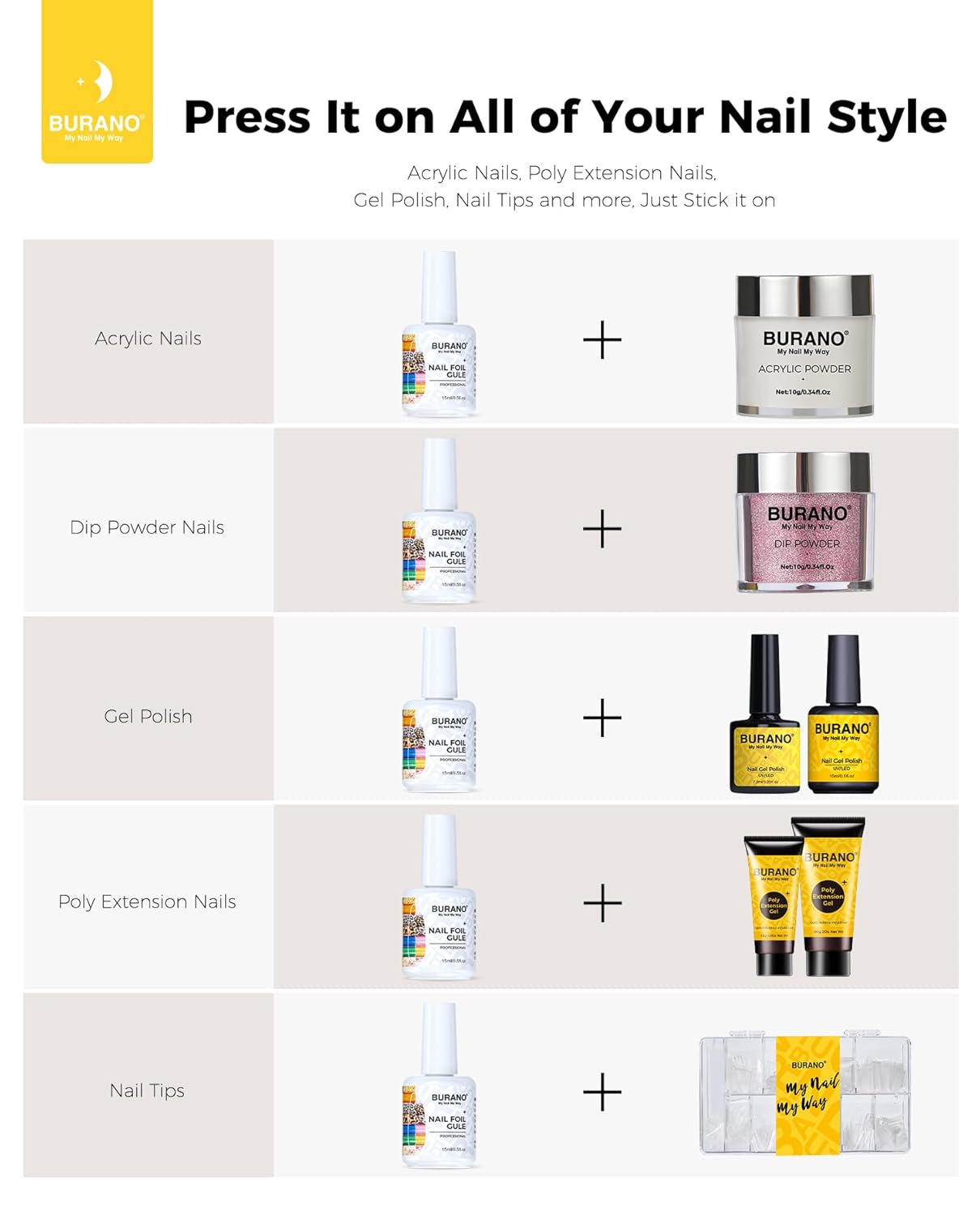 BURANO Nail Art Nail Foil Glue Gel, o.5 oz with 10PCS Foil Stickers Set Nail Foil Glue for Nails Foil Transfer Gel, Nail Design DIY UV LED Lamp Required (Nail Art) 16
