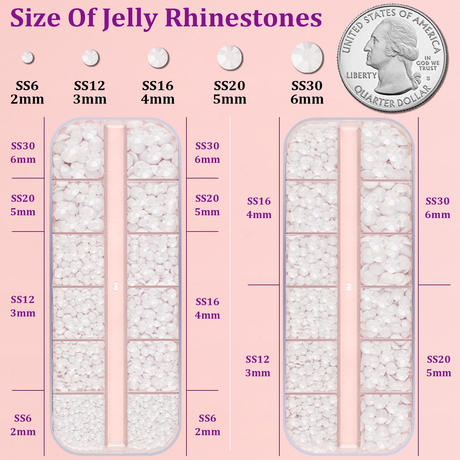Resin Jelly Rhinestones for Crafting with B7000 Jewelry Glue, 2 Boxes White Flatback Crystals with 3Pcs 10ml Glue, Bedazzling Non Hotfix Gems for DIY Tumblers Clothing Shoes Manicure
