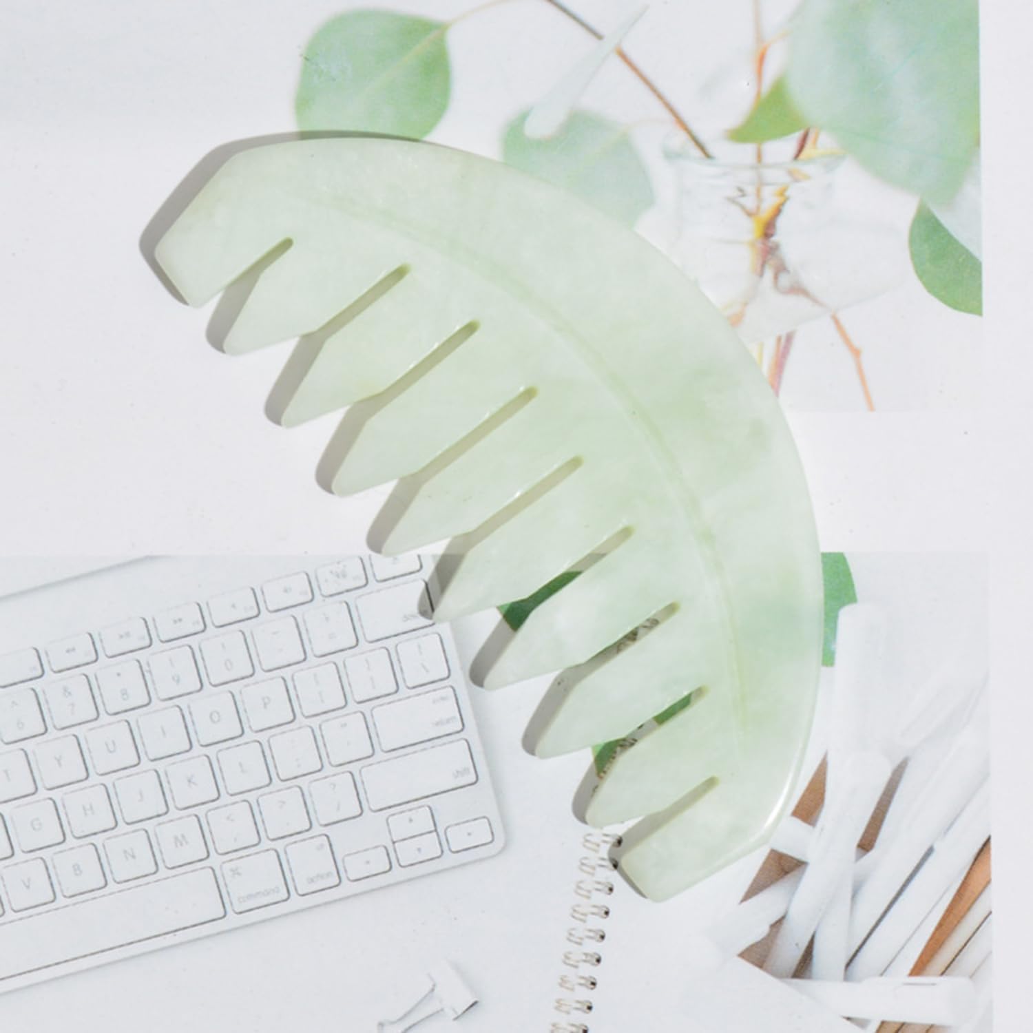 BoAn Natural Jade Head Massager, 2 Pcs Multi-Functional Massager for Head Caring and Acupoint Treatment, Guasha Scraping Scalp Comb