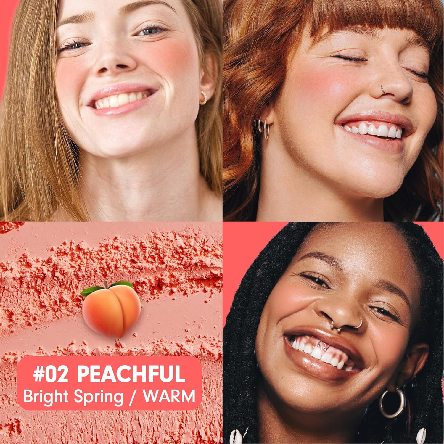 - UNIVERSAL BLUSH COLOR. Revel in the versatility of PEACH C Cheerful Blusher #02 Peachful — a shade designed to suit all skin tones. More than just a makeup blush, it brings a lively burst of color that effortlessly revitalizes your skin for a confident and shimmering radiance throughout the day.