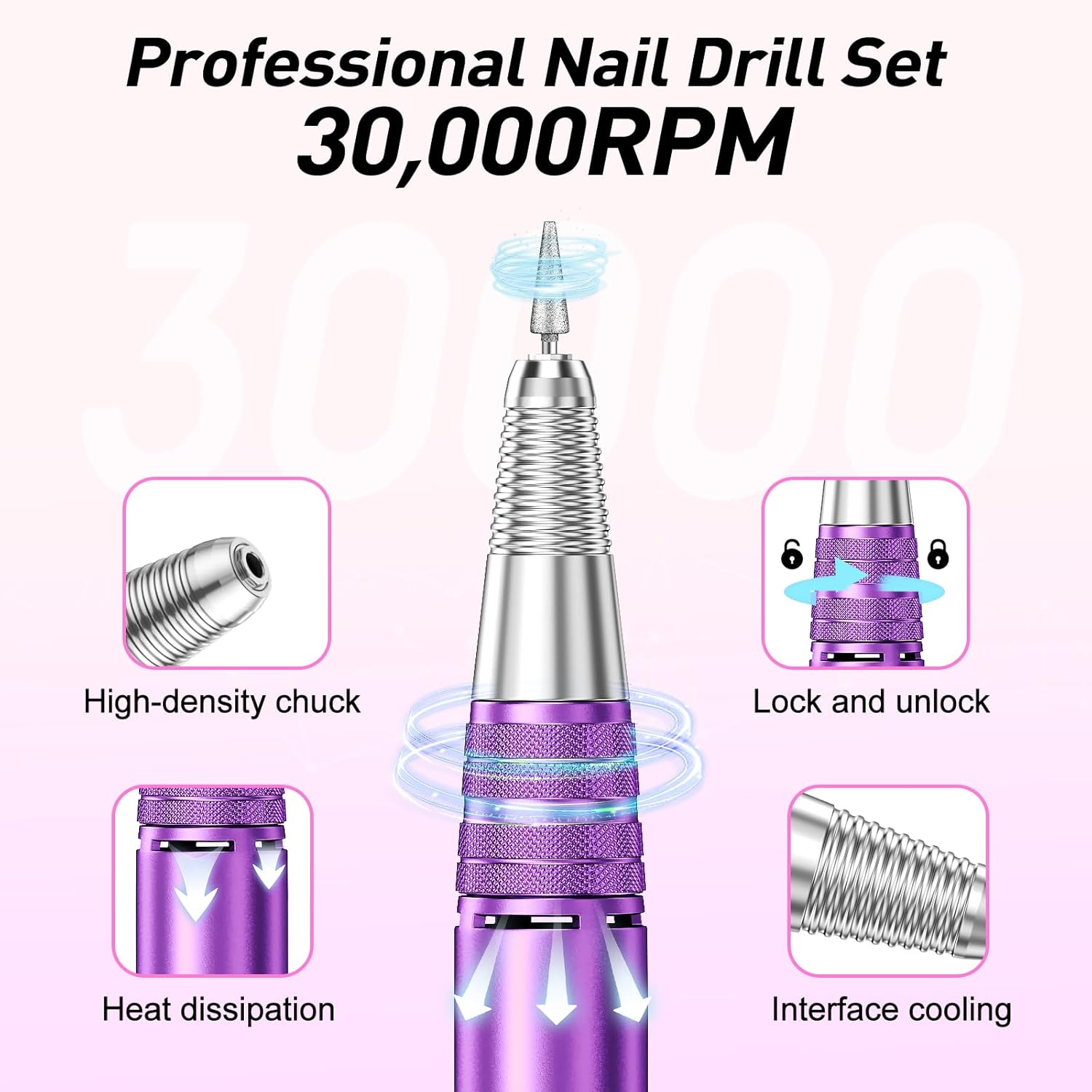 - Powerful Nail Drill Machine:0-30000rpm nail drill achieves professional hand and foot card for both natural and acrylic nails. Adjustable speed is user friendly, lower speed for nail polish, higher speed for acrylic nails, dipping powder nails and extension nails