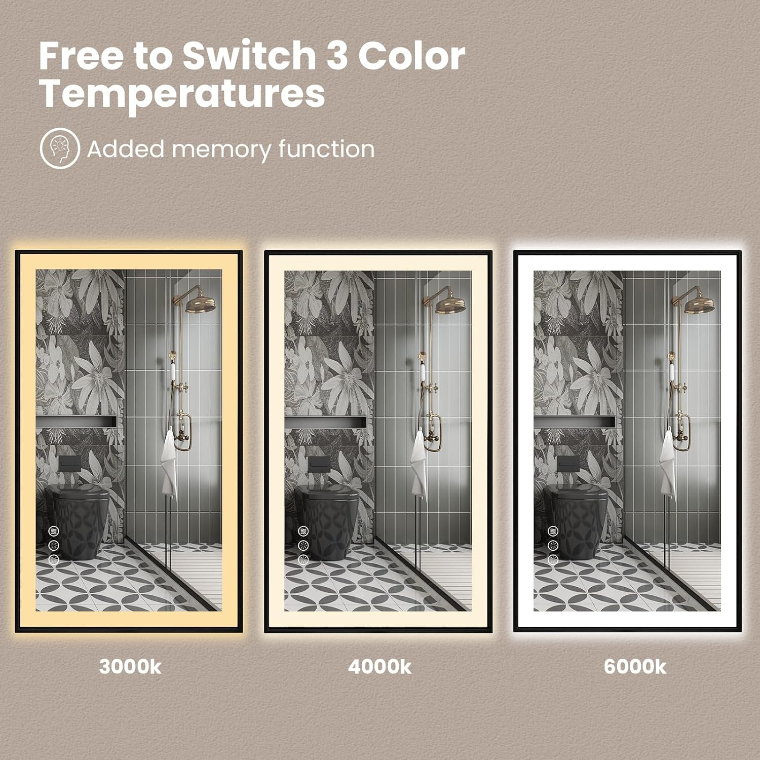 Amorho 24"x 30" LED Bathroom Mirror with Black Frame, Front Light and Backlit(Controlled Separately), Stepless Dimmable, Anti-Fog, Shatter-Proof, 3 Colors, Memory