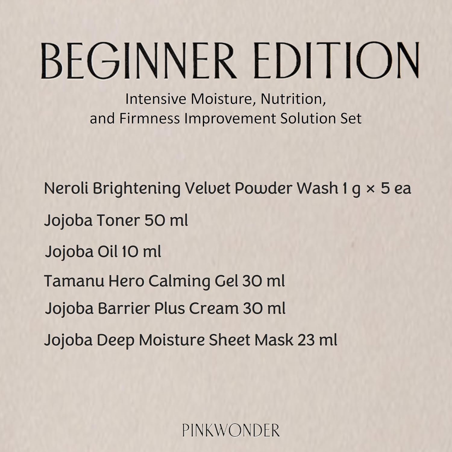 - The Pink Wonder Beginner Edition presents you with a routine that has been loved for a long time so that you can best experience Pink Wonder for the first time. This is a beginner edition that you can fully experience even if it is a routine that is new to your skin. We hope you can experience healthy beauty anytime, anywhere and in any environment with this easy-to-carry pouch.
