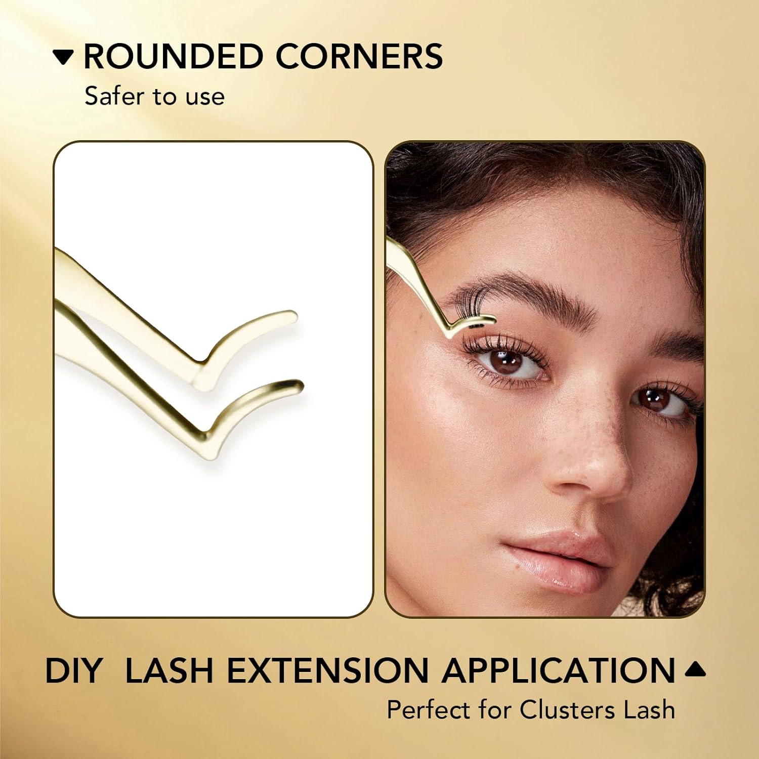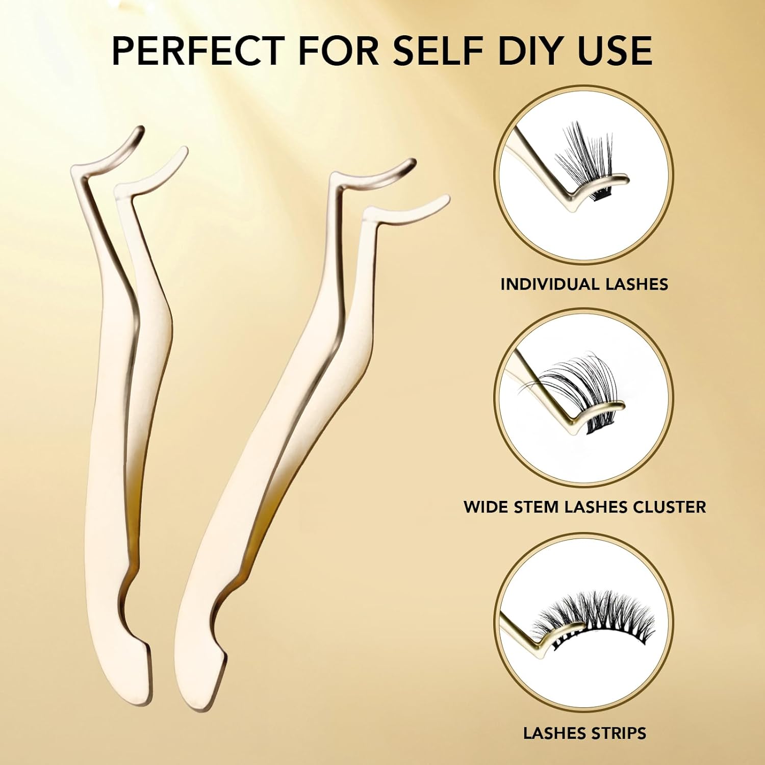 - 【 Premium Material 】 The false eyelash tweezers made of high quality stainless steel, durable and not easy to rust. The curved shape is very suitable for your eyes, and it is comfortable to use.TIPS: Please clean the eyelash cluster applicator after each use to ensure there is no glue residue on lashes clusters tweezers to keep them for long-term use